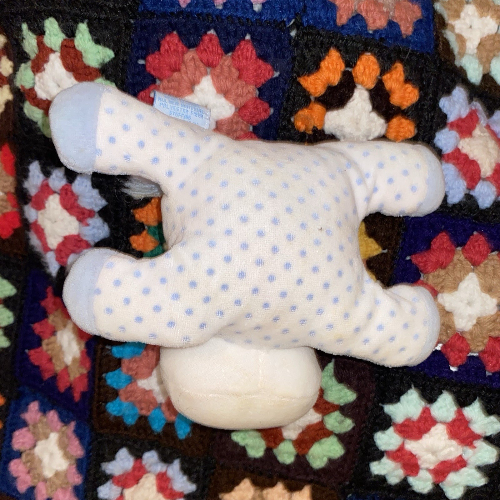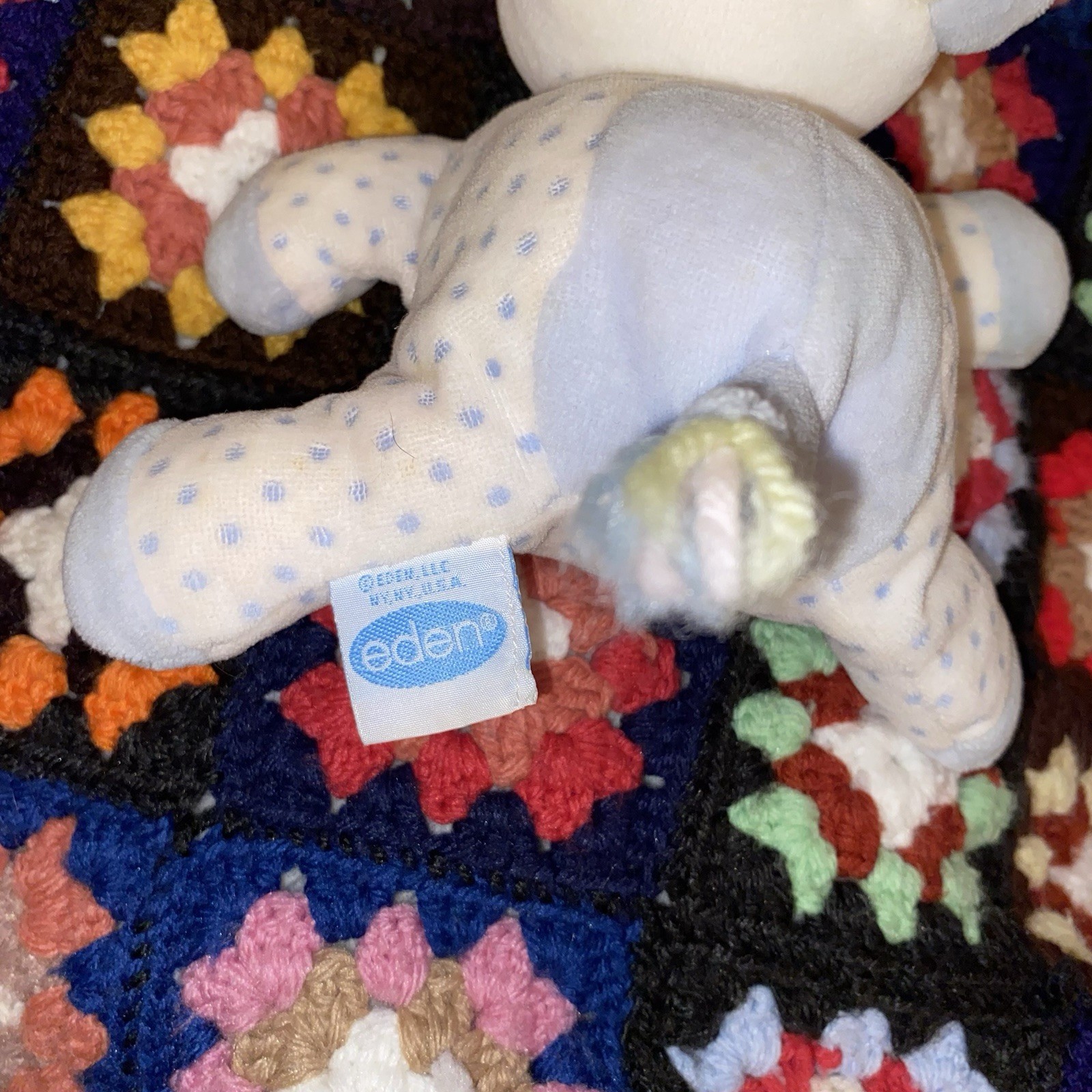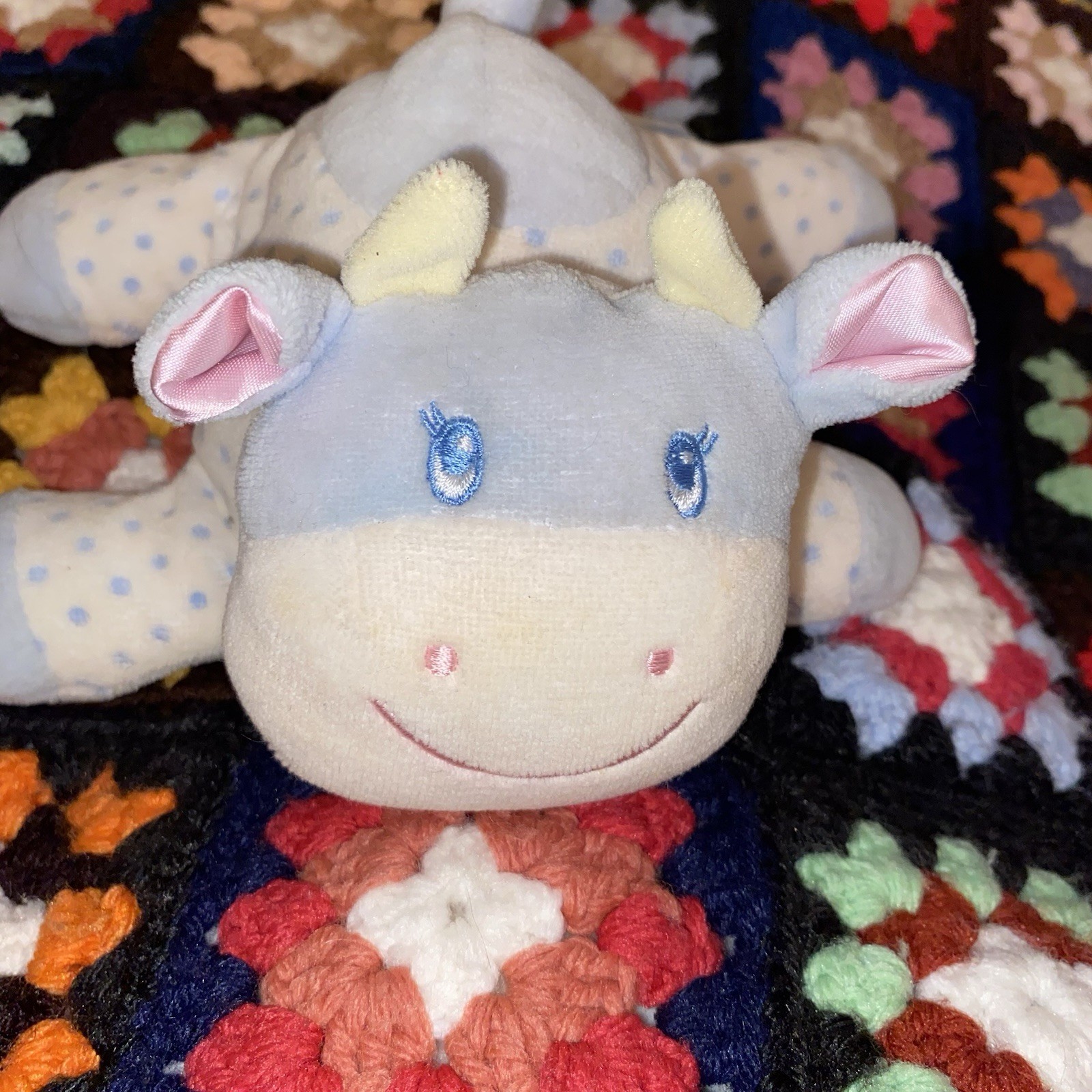 Eden Toys Vintage Blue White Polka Dot Cow Bull Terry Cloth Plush Rattle Lovey