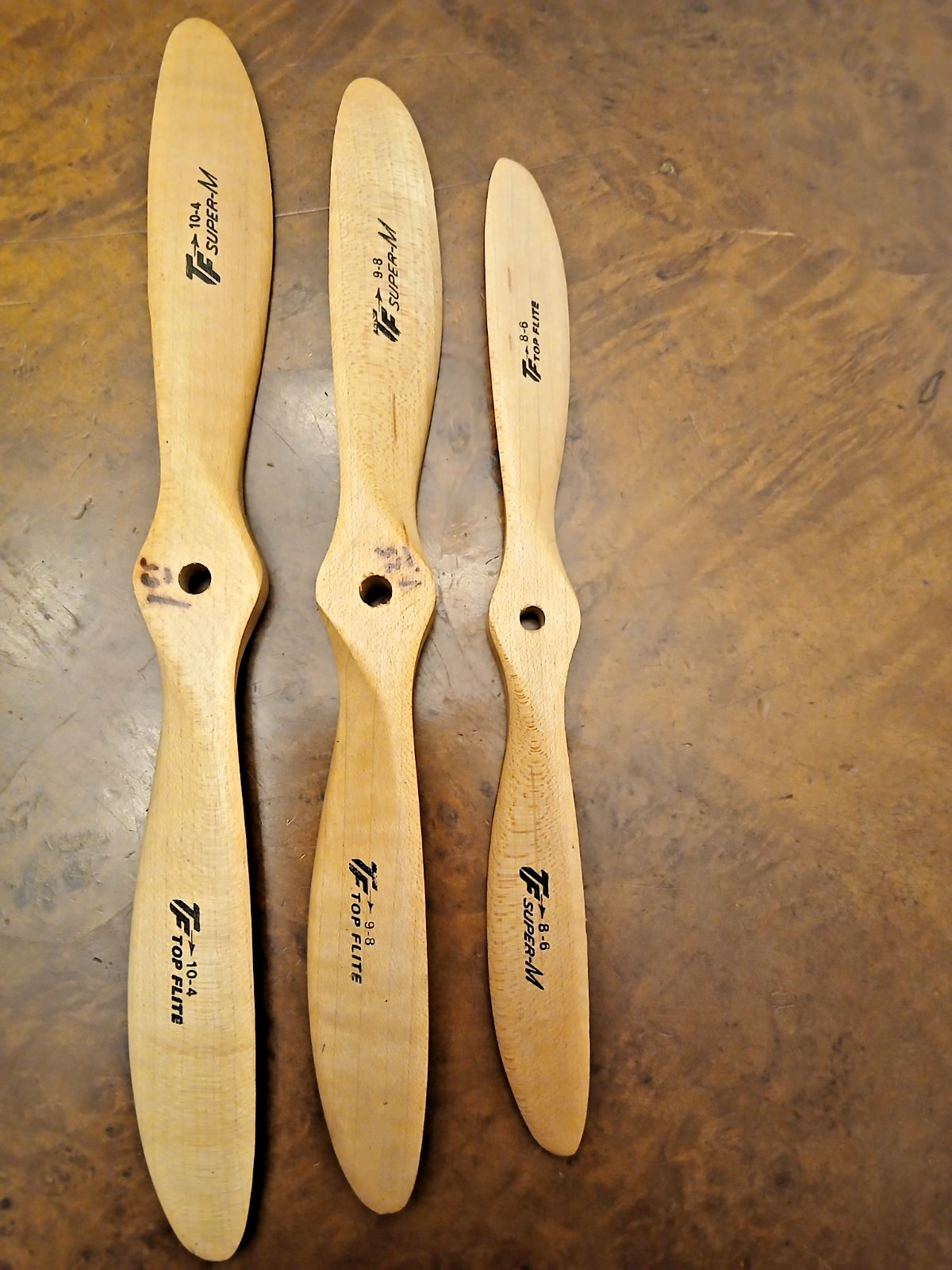 TOP FLITE 8-6, 9-8, 10-4 SUPER M WOODEN MODEL AIRPLANE PROPELLERS, USED, OTHER
