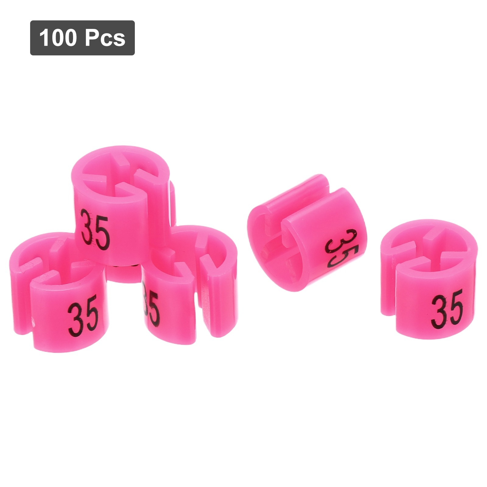 100 Pack Clothes Hanger Marker Number 35 Size Tag Fit 3mm Rod Rose Red