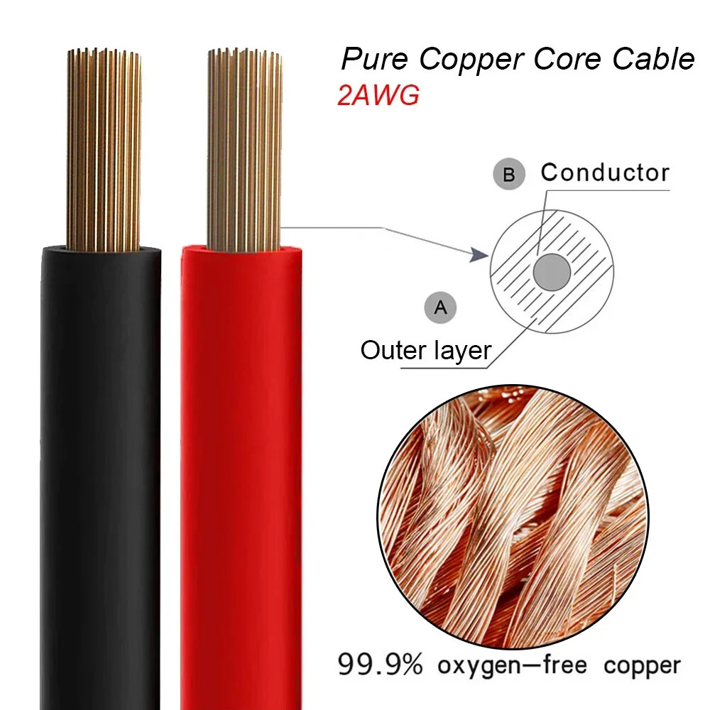 2X 2AWG Copper Battery Cable Power Wire with Lugs Auto Marine Inverter RV Solar