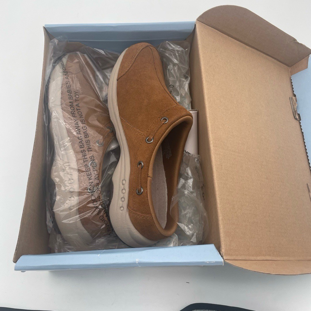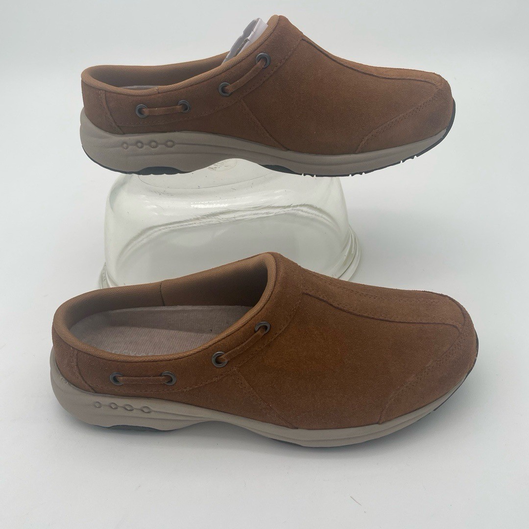 как выглядит NWT Easy Spirit Travelport Dark Brown Suede SlipOn Rubber Sole mule clog Shoe 6M фото