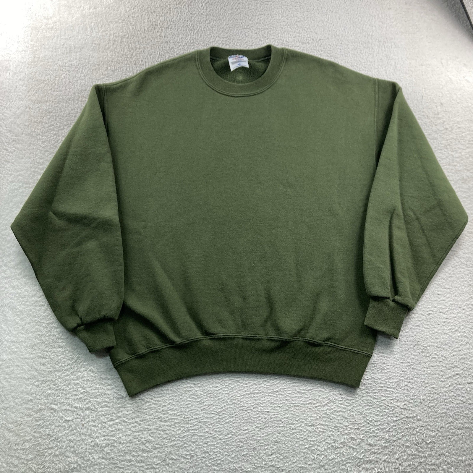 Vintage Jerzees Sport Sweatshirt Men Large Olive Green Crewneck Blank Made USA