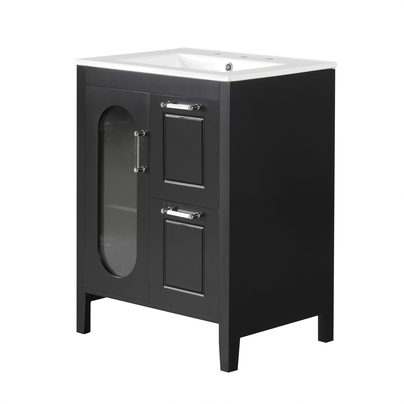 24 Bathroom Vanity with Sink, Bathroom Vanity Cabinet with Two Drawers Door