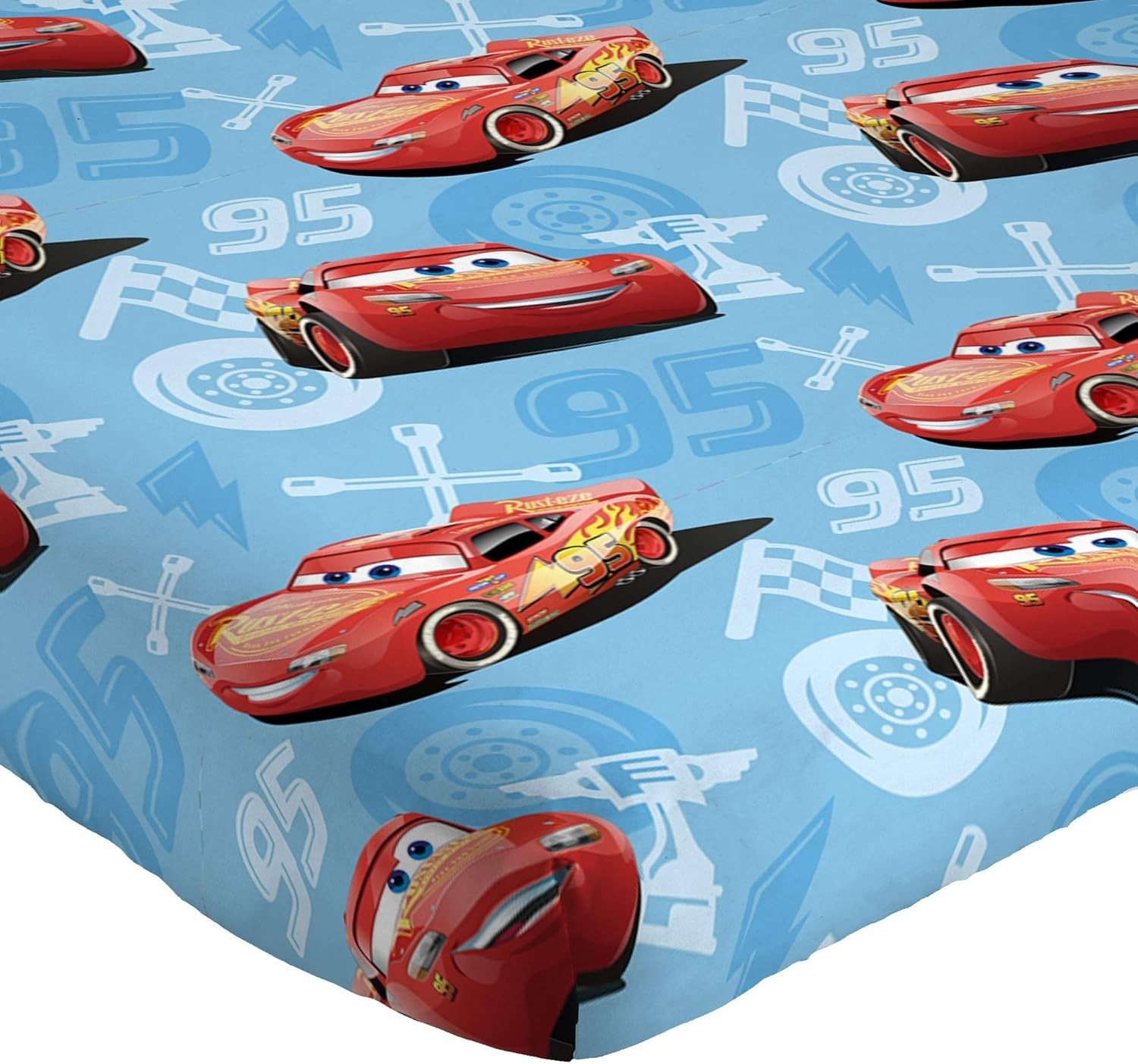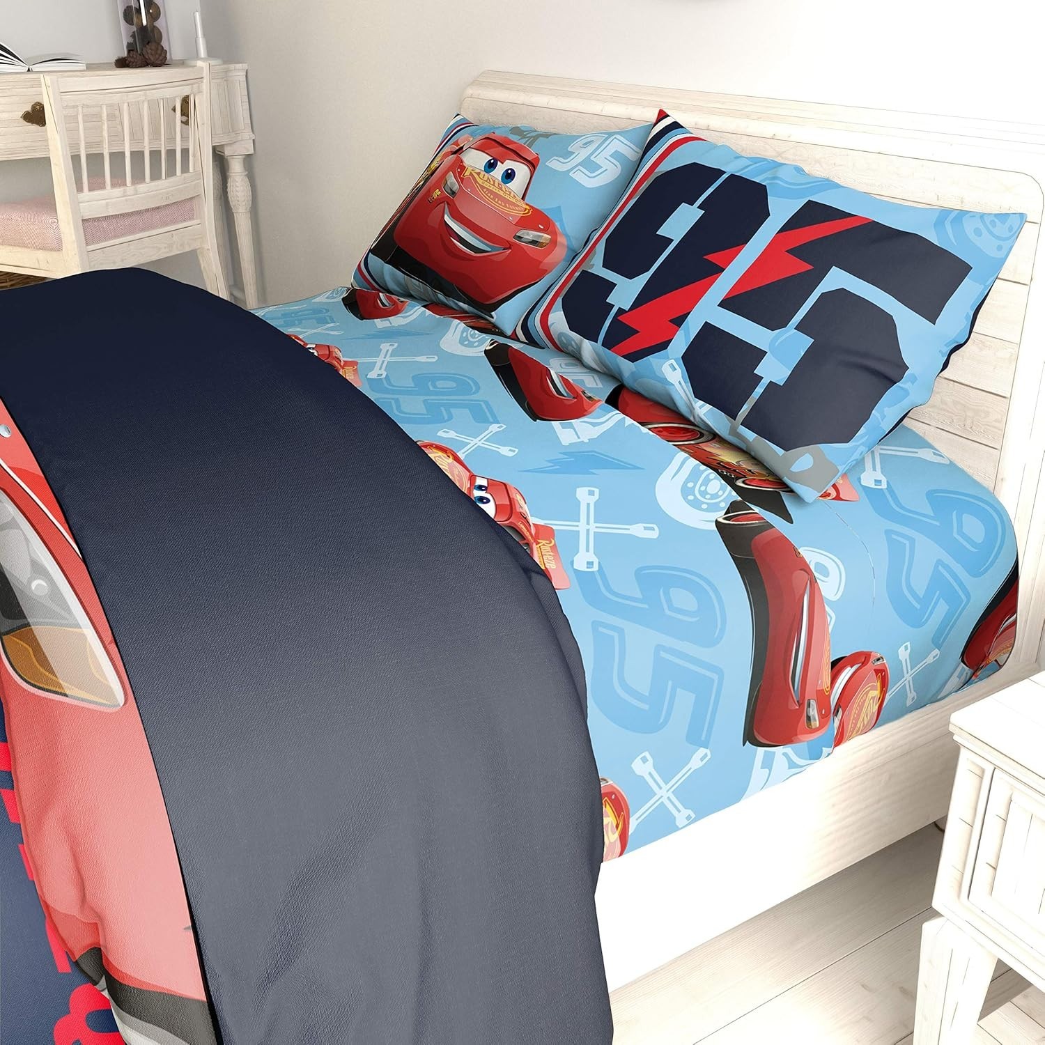 как выглядит Official Disney Cars 95 Lightning McQueen Full Sheet Set - 4-Piece for Kids фото