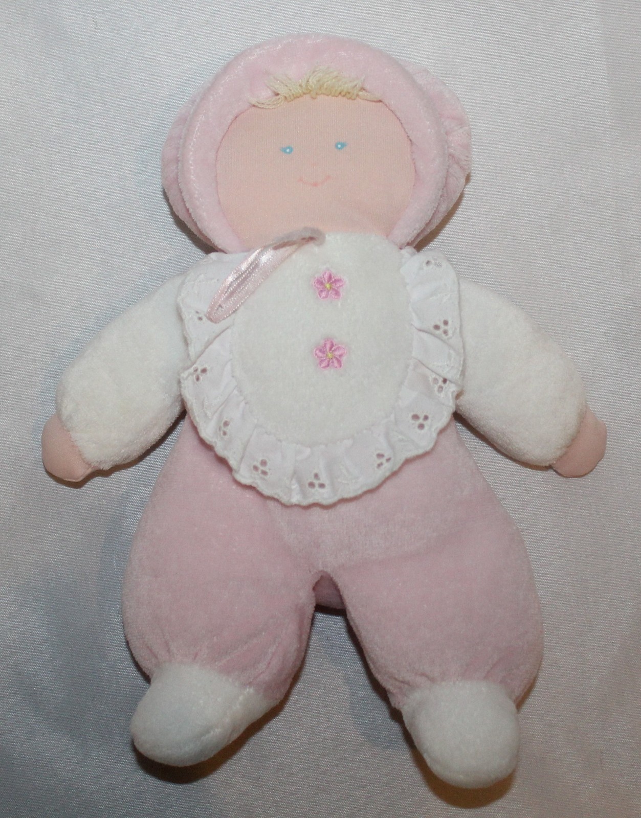Vintage Eden My First Doll Pink Velour 10 Plush Baby Girl Lovey Eyelet Trim Bib