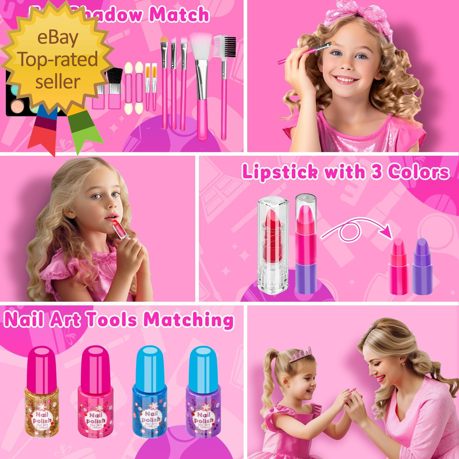 58 Pcs Kids Makeup Kit for Girl Princess Toys Real Washable Cosmetic Set