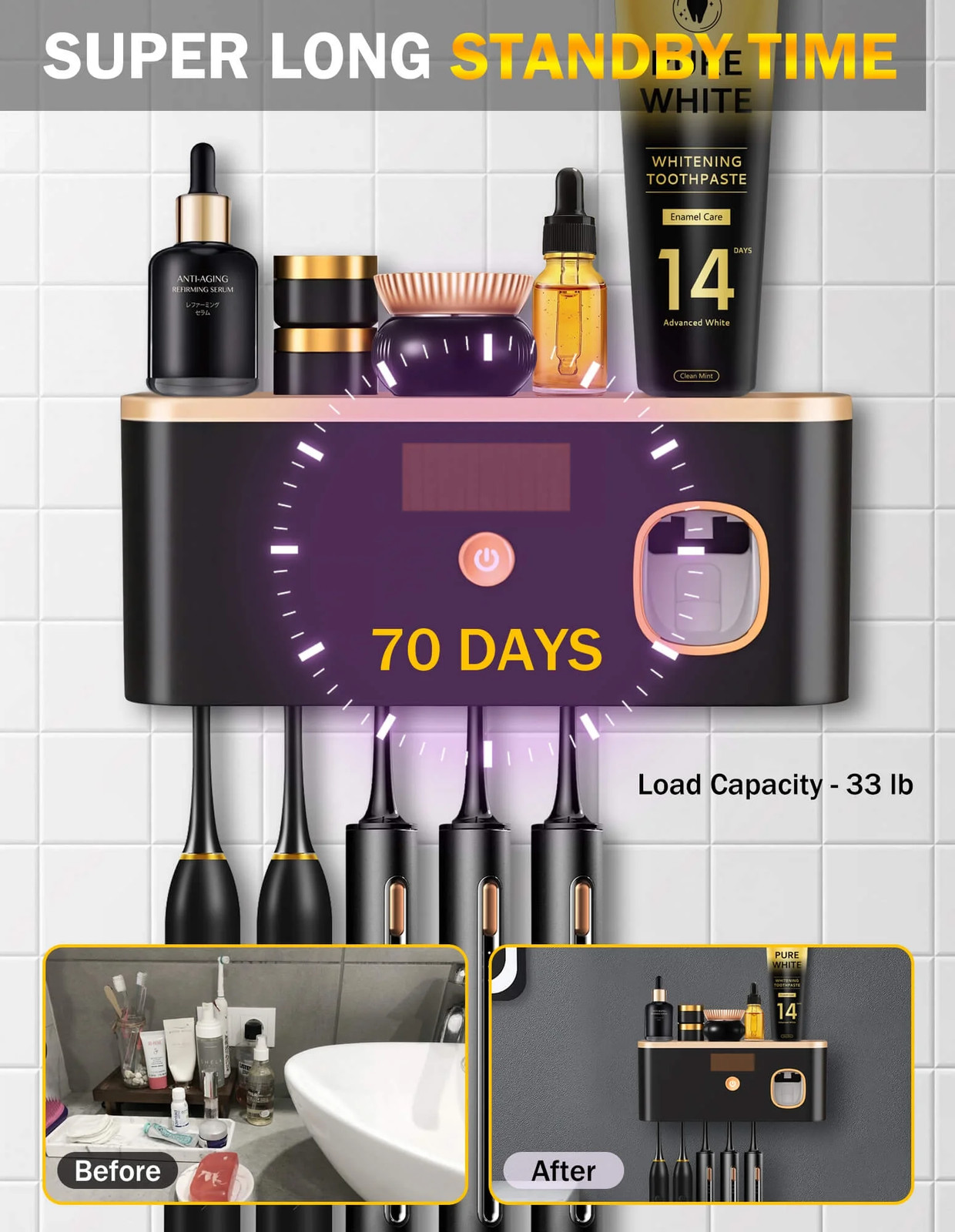 UV Toothbrush Sanitizer Wall Mount with Toothpaste Dispenser Bathroom Holder