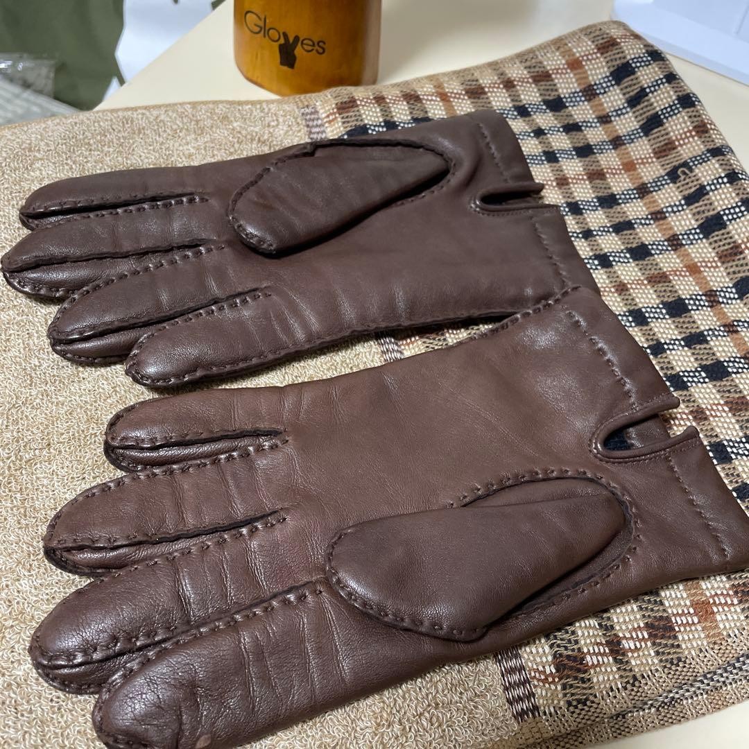 как выглядит Italian Leather Gloves Retro Design Wool Lined Unisex Used фото
