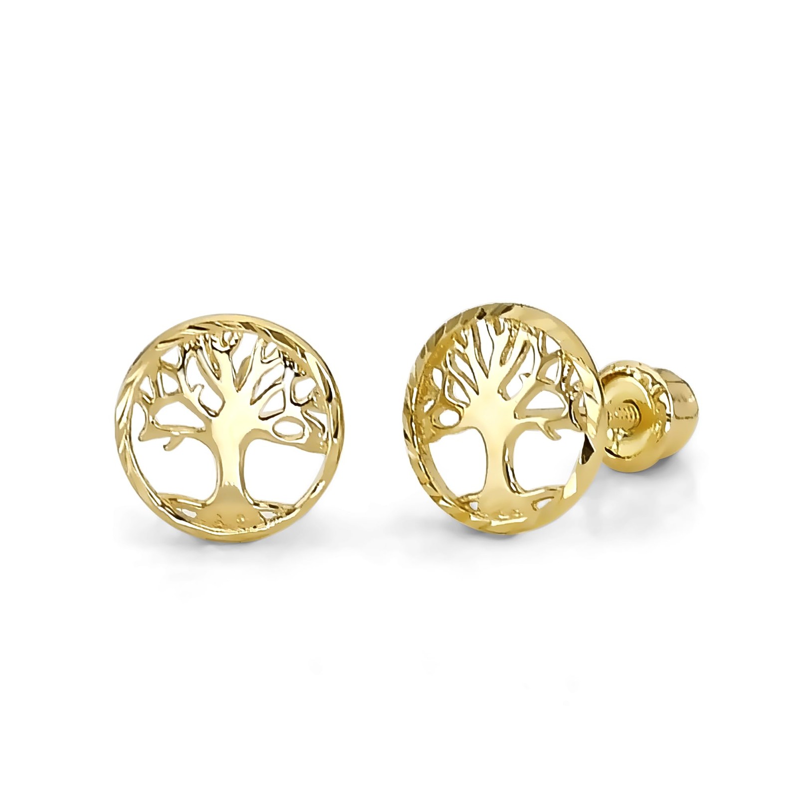 14k REAL Yellow Gold Tree of Life Stud Earrings with Screw Back