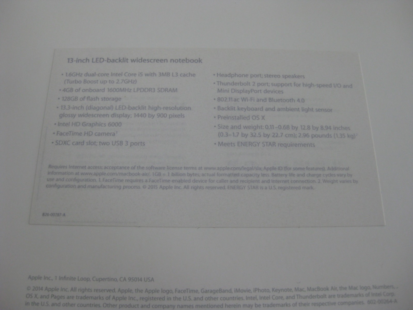 Apple MacBook Air 13 in 2015 Silver/Intel Core i5 1.60 GHz, 128 GB 4 GB Intel HD