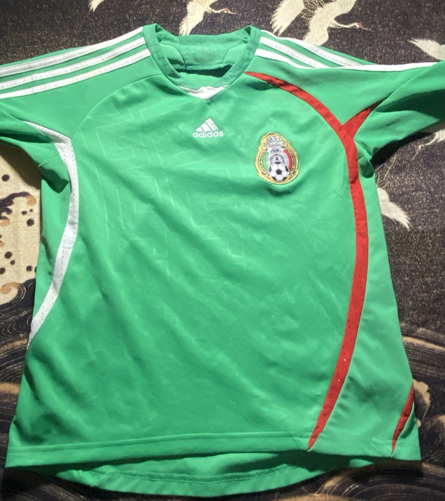 как выглядит Adidas Mexico Soccer Jersey Youth Size Medium Green Striped Kids Shirt 2008 фото