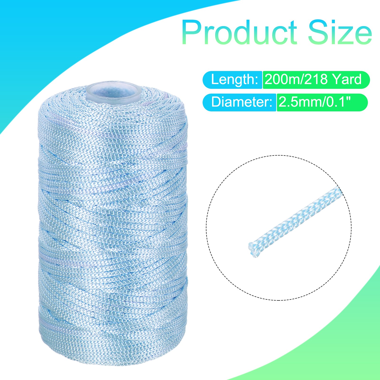 как выглядит Nylon String Cord 2.5mm x 218Yards Rope Braided Thread Beading Cord,Lake Blue фото