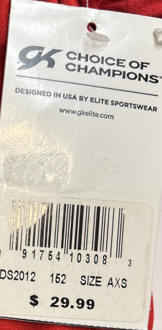 Women GK Elite Gymnastics Red Leotard With Scrunchie Size AXS Brand New