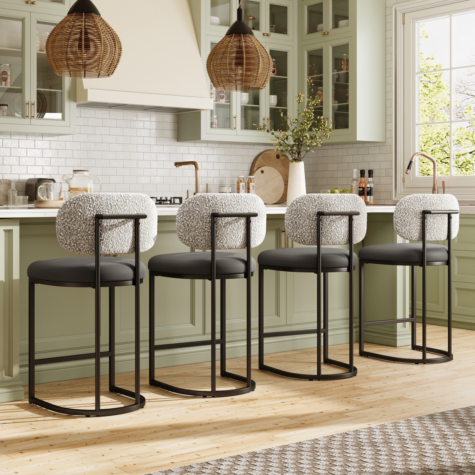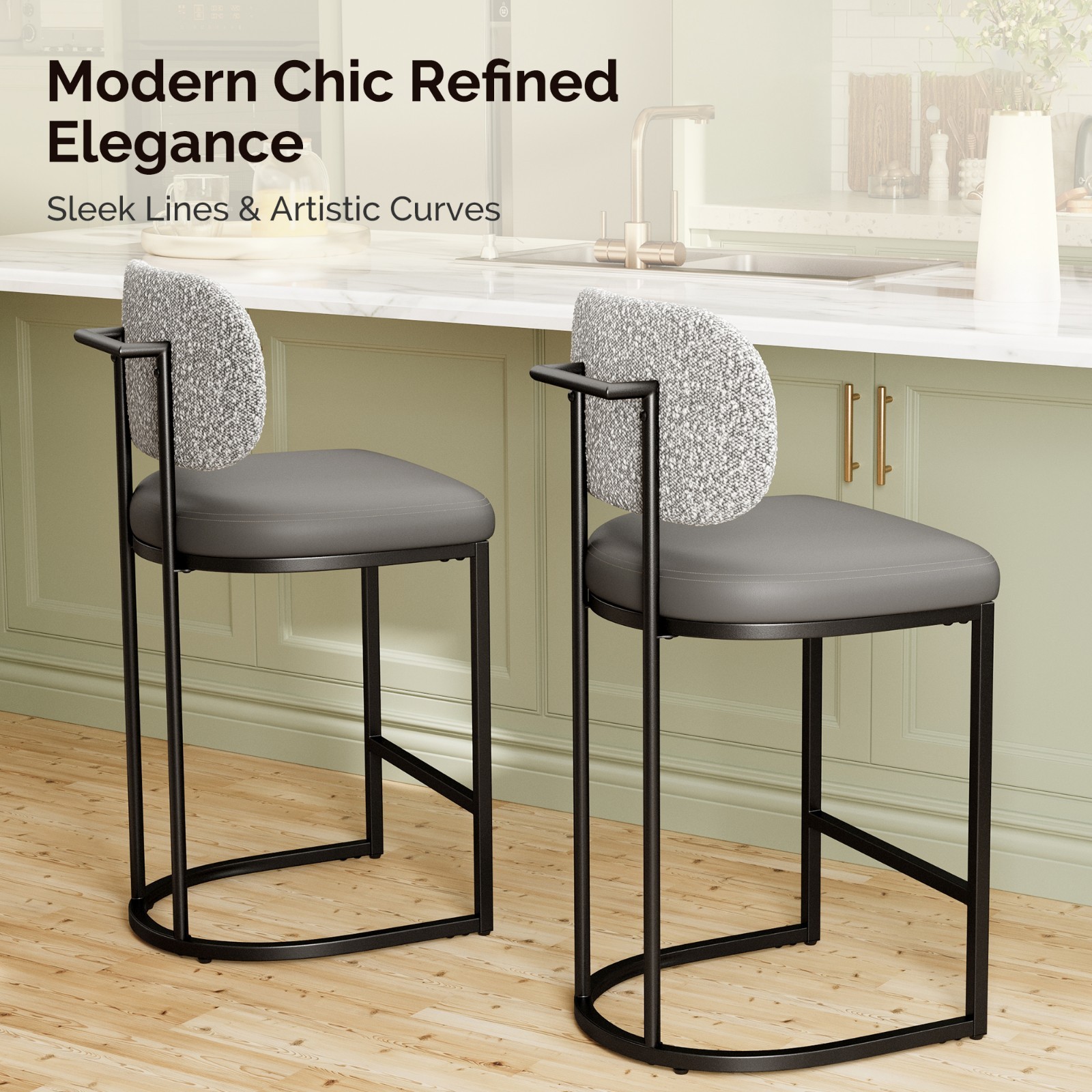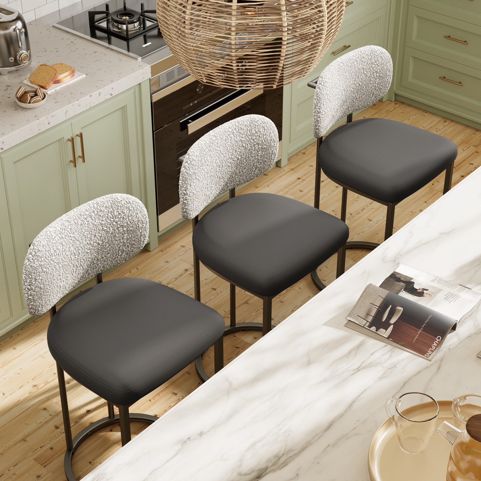 24 Leather Bar Stools Counter Height Kitchen Stools with Back Support 1 Pack