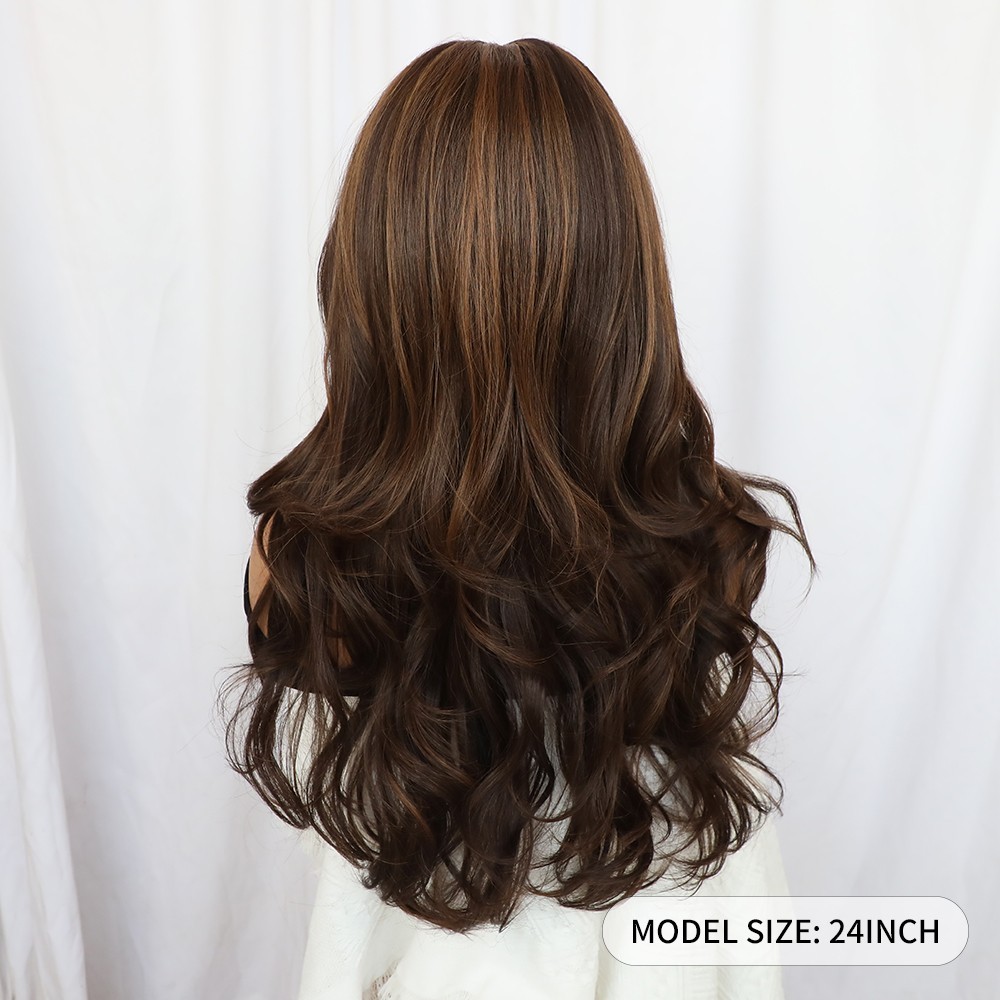Blonde Highlights Brown Lace Front Wigs Long Wavy Hair Heat Resistant Natural
