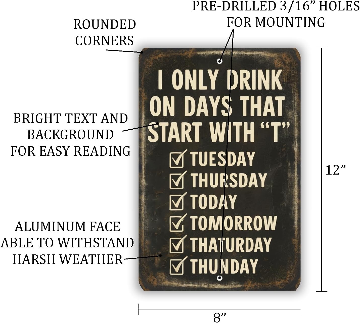 • Funny Vintage Tin Metal Signs Home D cor 8x12 'I Only Drink on Days That Start w