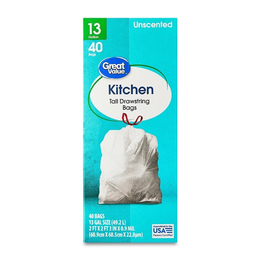 13 Gallon Drawstring Tall Kitchen Trash Bags Unscented 40 Count