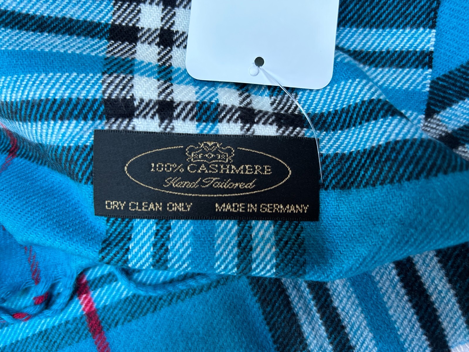 New Soft Warm Blue Tartan Plaid Checked Cashmere Scarf Fringe Unisex 66 x 12