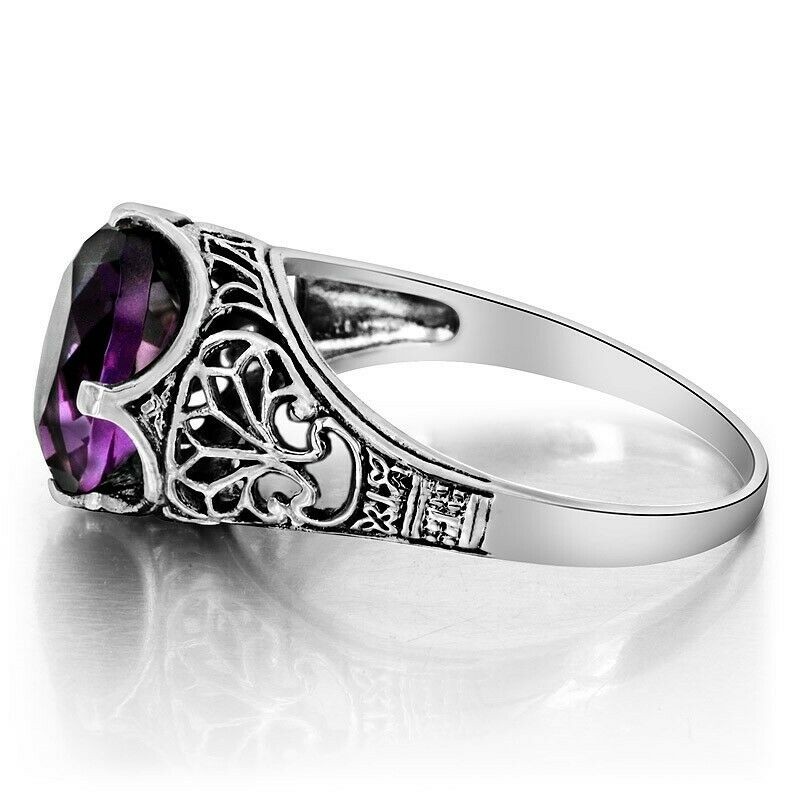 Natural 3CT Amethyst 925 Solid Sterling Silver Vintage Style Ring Sz 9 XB3-6