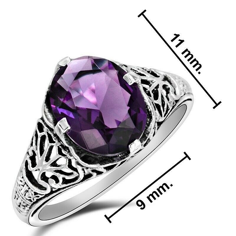 как выглядит Natural 3CT Amethyst 925 Solid Sterling Silver Vintage Style Ring Sz 9 XB3-6 фото