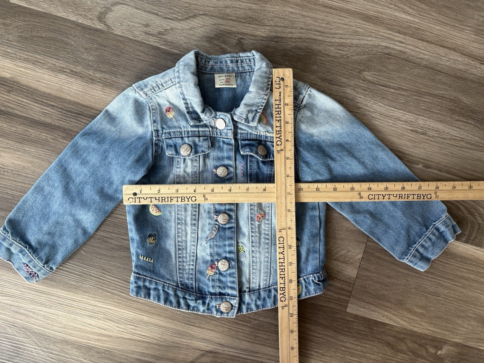 как выглядит Toddler Girls Denim Spring Jacket Size 3/4 Bleu Embroidered Streetwear фото