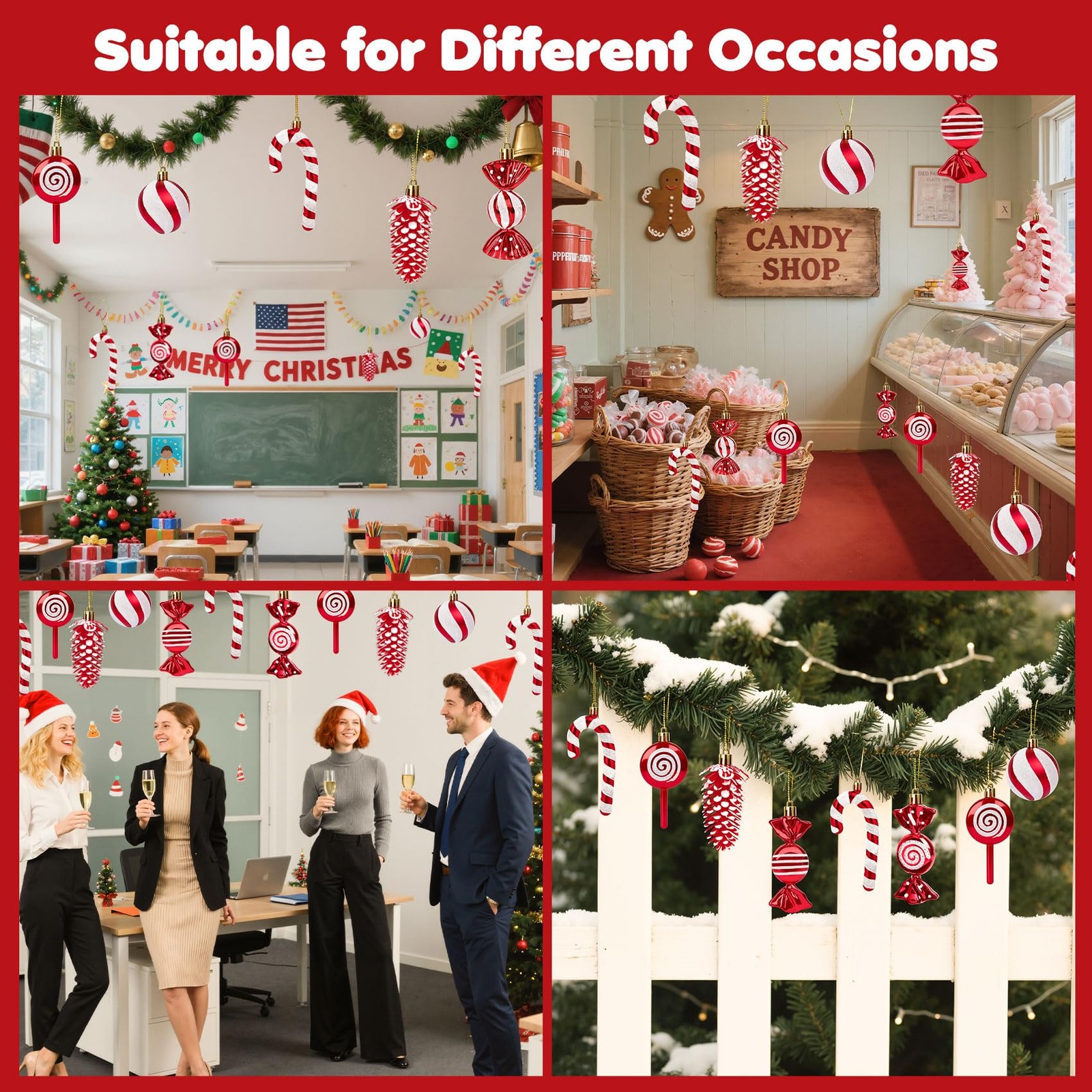 Eunhdet 32 Pcs Candy Cane Christmas Decorations Set, Peppermint 32, Red White