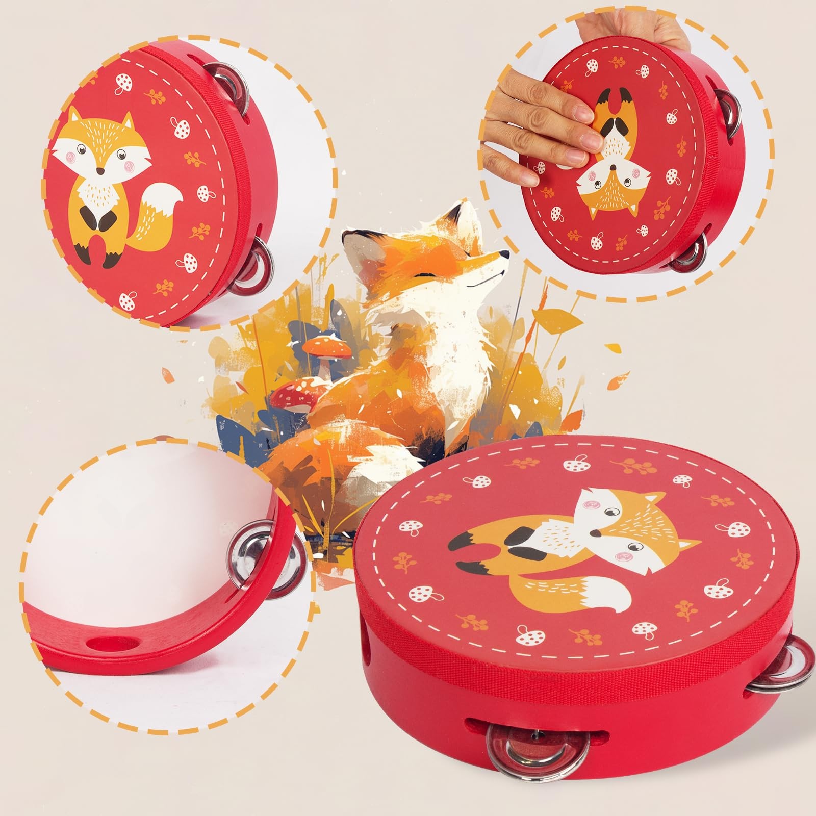 как выглядит Tambourines Musical Instrument for Kids and Adults, 6 inch Wooden Hand Red фото