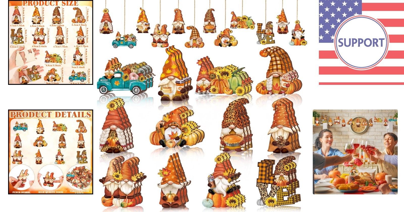 как выглядит 36 Pcs Vintage Fall Ornaments - Wooden Thanksgiving Decorations with Gnomes фото