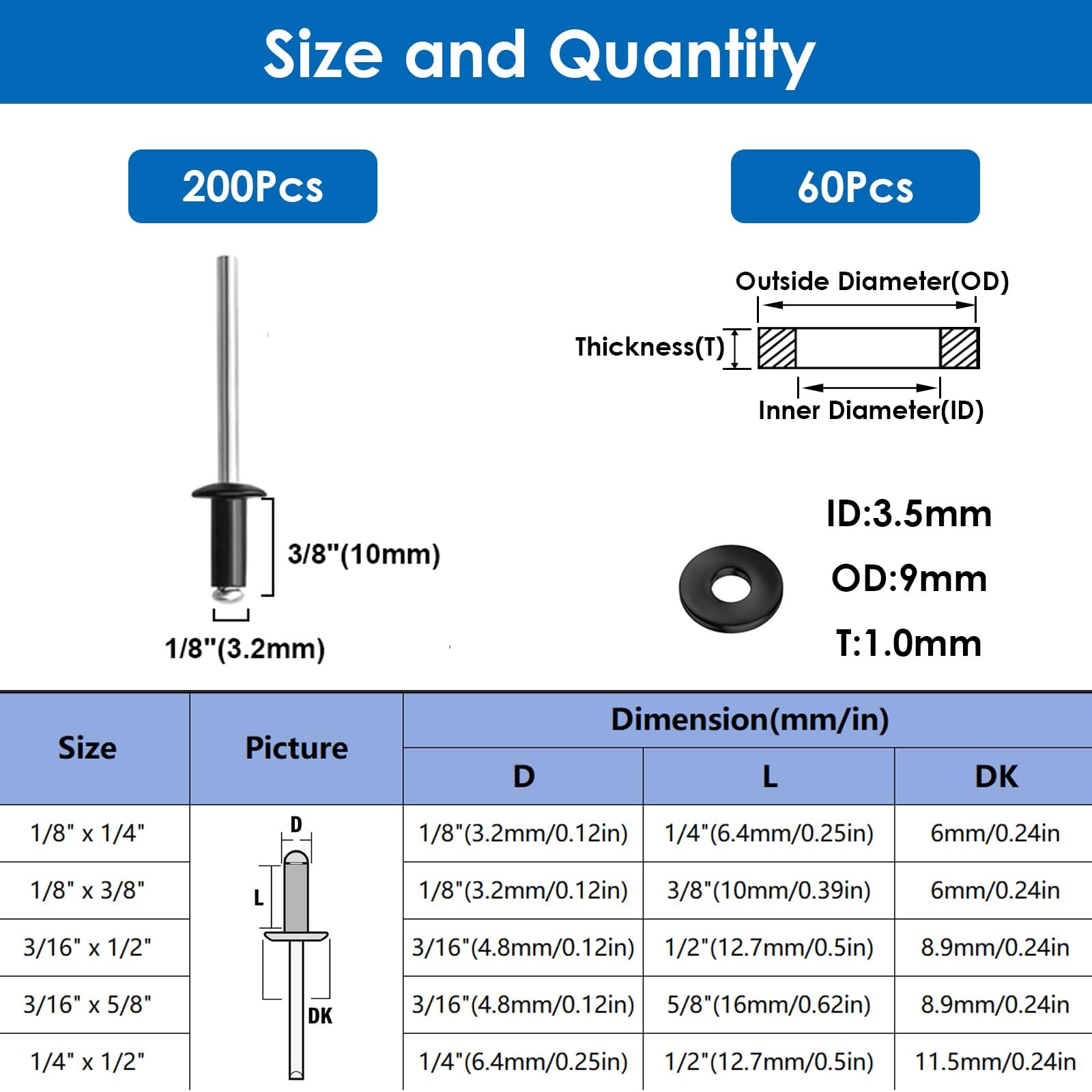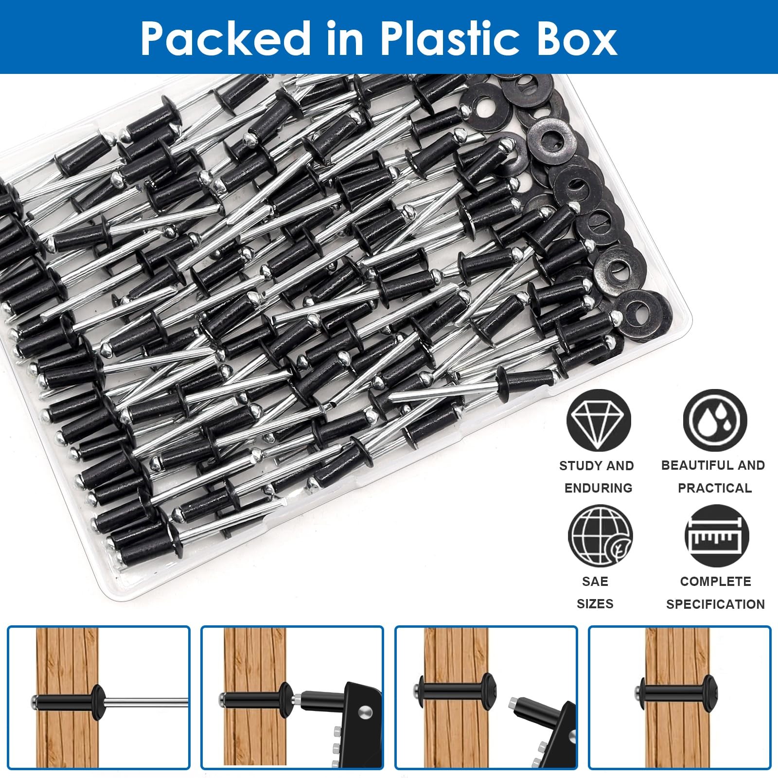 smseace 260pcs 1/8 x 3/8 Black Pop Rivets with 304 1/8x3/8,