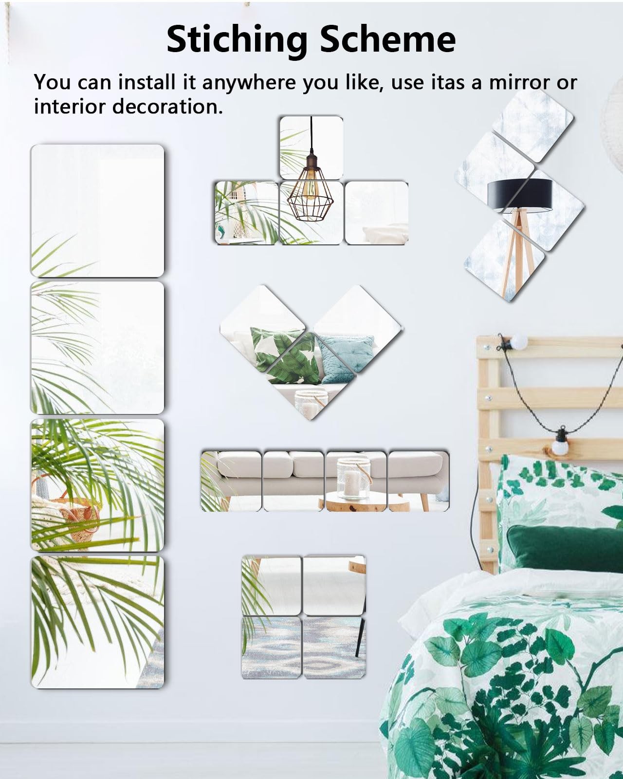 VXKZF Shatterproof Peel and Stick on Mirror Tiles for 4 Pcs-8x8 Inch, Silver