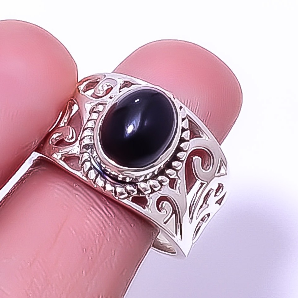 Black Onyx - Brazil Gemstone 925 Sterling Silver Boho Ring s.9.5 R7494-8