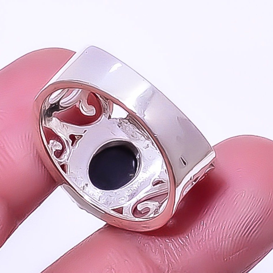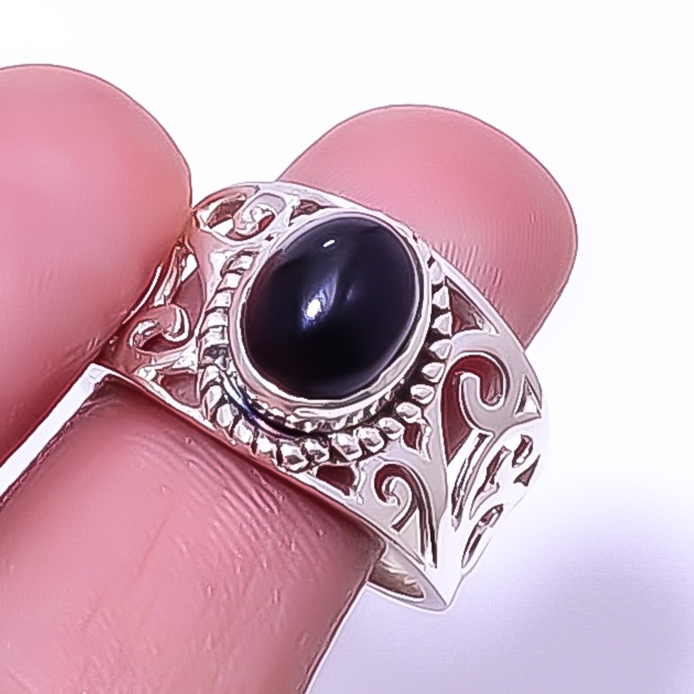 как выглядит Black Onyx - Brazil Gemstone 925 Sterling Silver Boho Ring s.9.5 R7494-8 фото