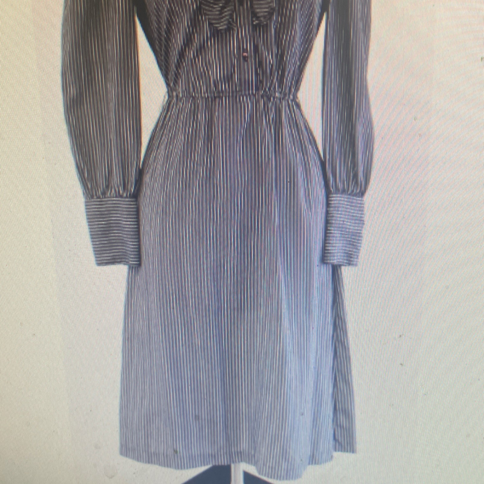 как выглядит Victorian Look Prairie Dress Black White Striped Long Sleeve Ruffle Collar фото