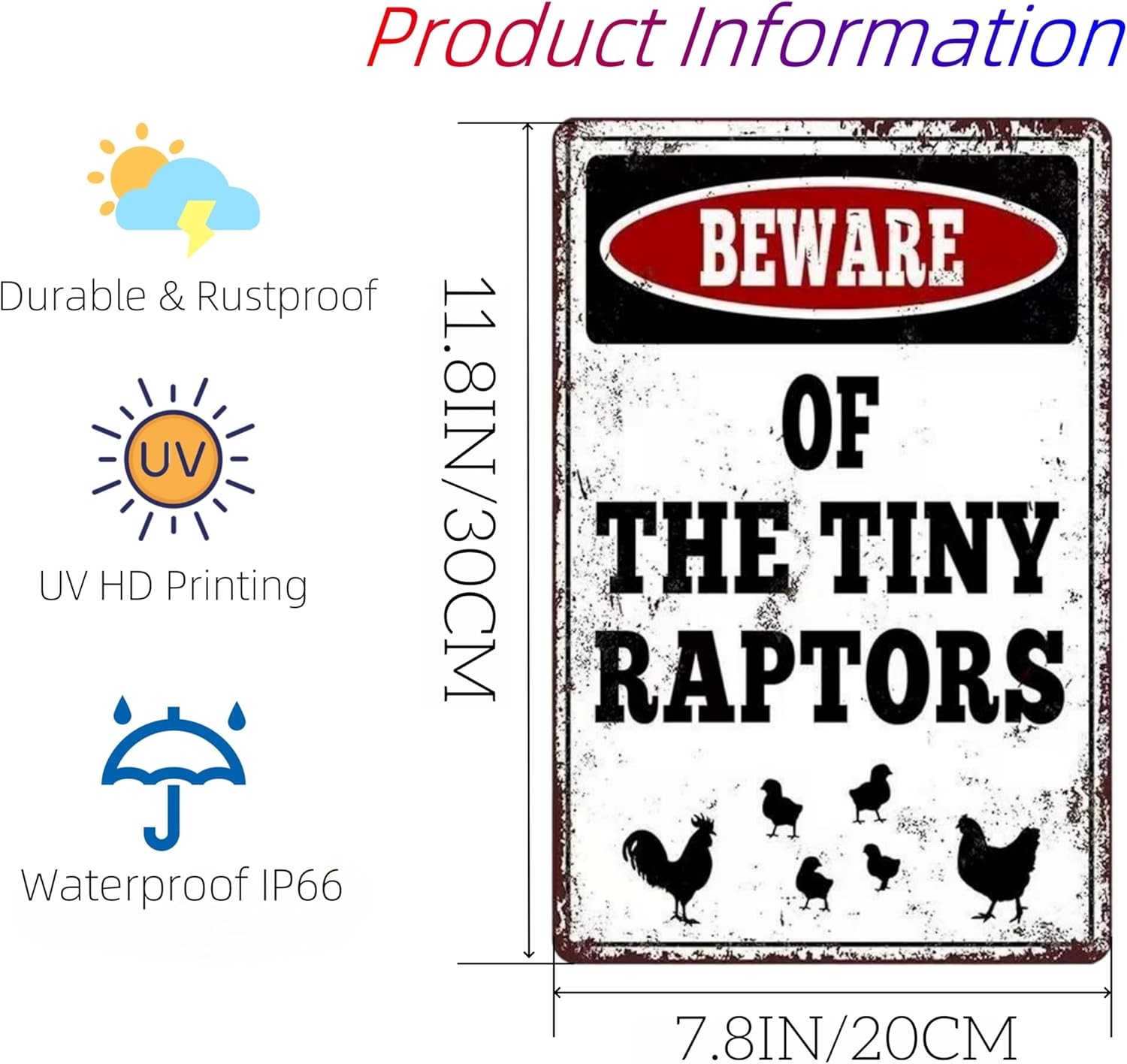 • Beware of The Tiny Raptors Vintage Tin Metal Signs Home D cor 8x12, Chicken Art