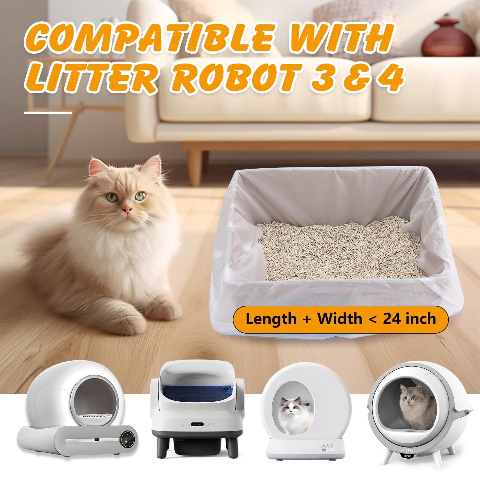 120 Pack Cat Litter Bags Compatible with 1 Count Pack of 120 , Transparent