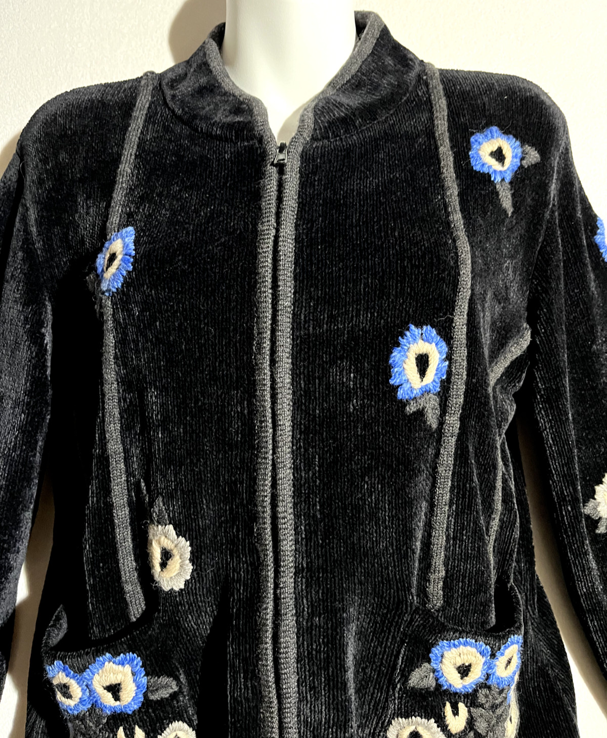 как выглядит Lisa Nichols Womens Sweater Size Small Zip Black Floral Embroidered Vintage фото