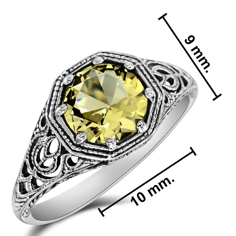 как выглядит 2CT Natural Peridot 925 Solid Sterling Silver Filigree Ring Sz 6 XB3-7 фото