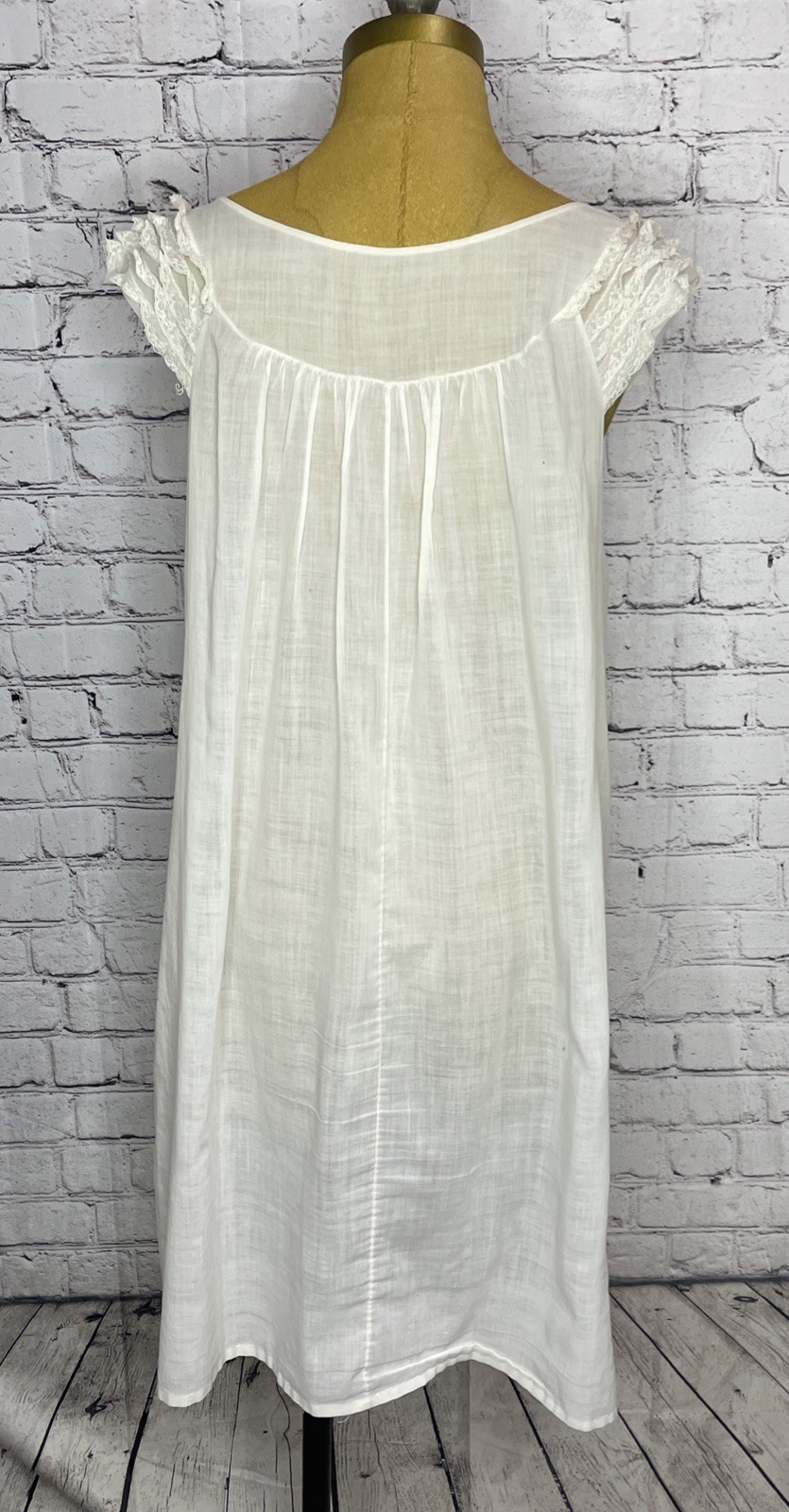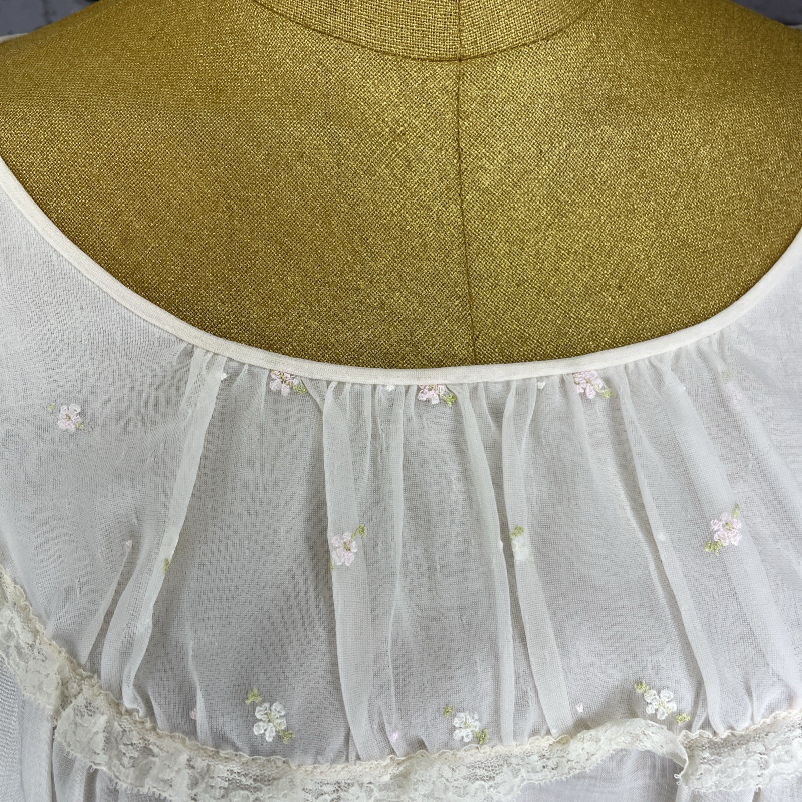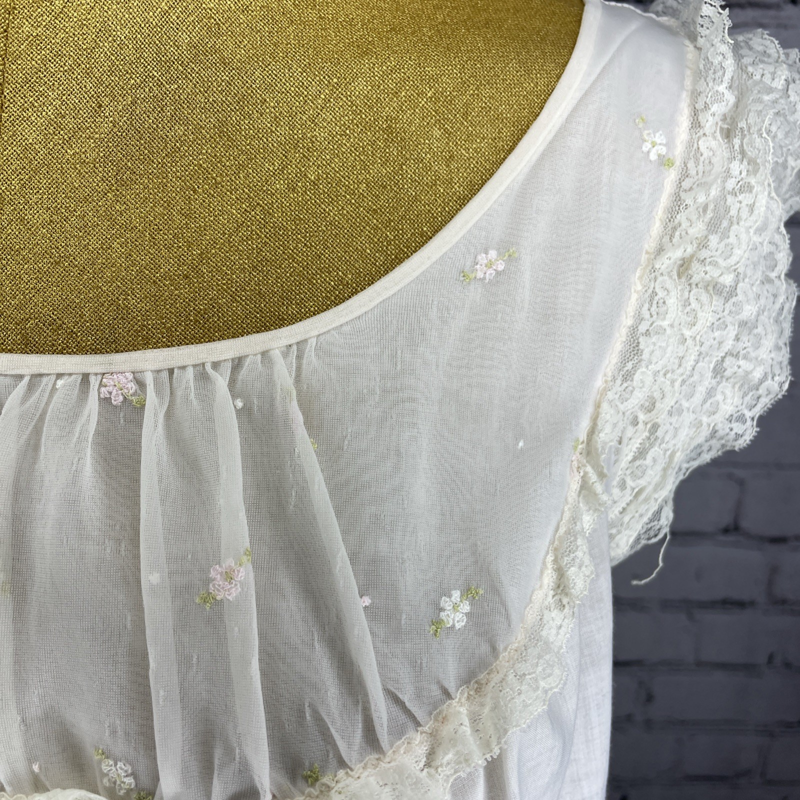 как выглядит Vtg 50 s Shadowline Ivory Nightgown Lace Cap Sleeve Country Flower Overlay Small фото