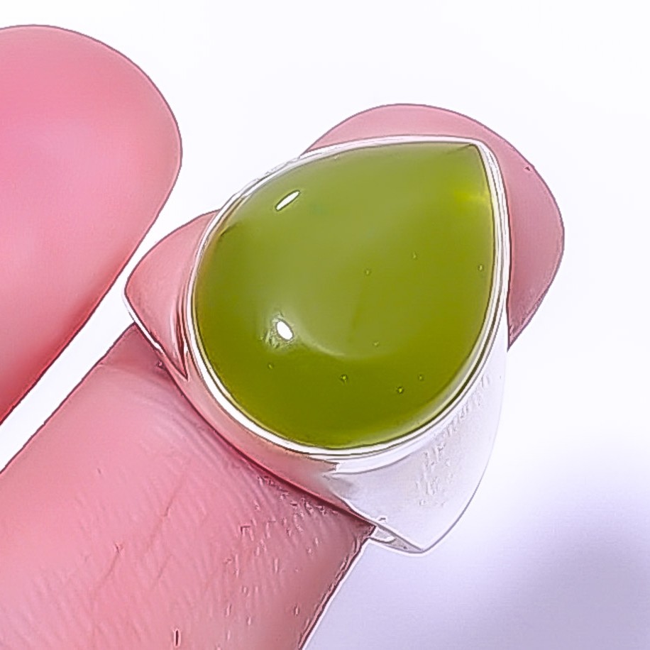как выглядит Green Chalcedony - Brazil 925 Sterling Silver Solitaire Ring s.9.5 R-24 фото