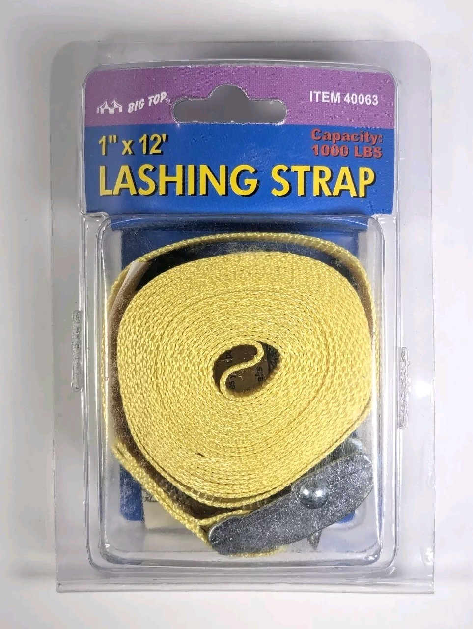 2 Pack Lashing Strap 1x12' Tie Down 1000 lb Yellow Cam Buckle Cargo Utility