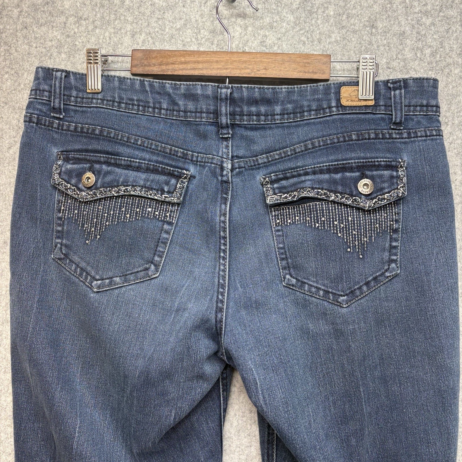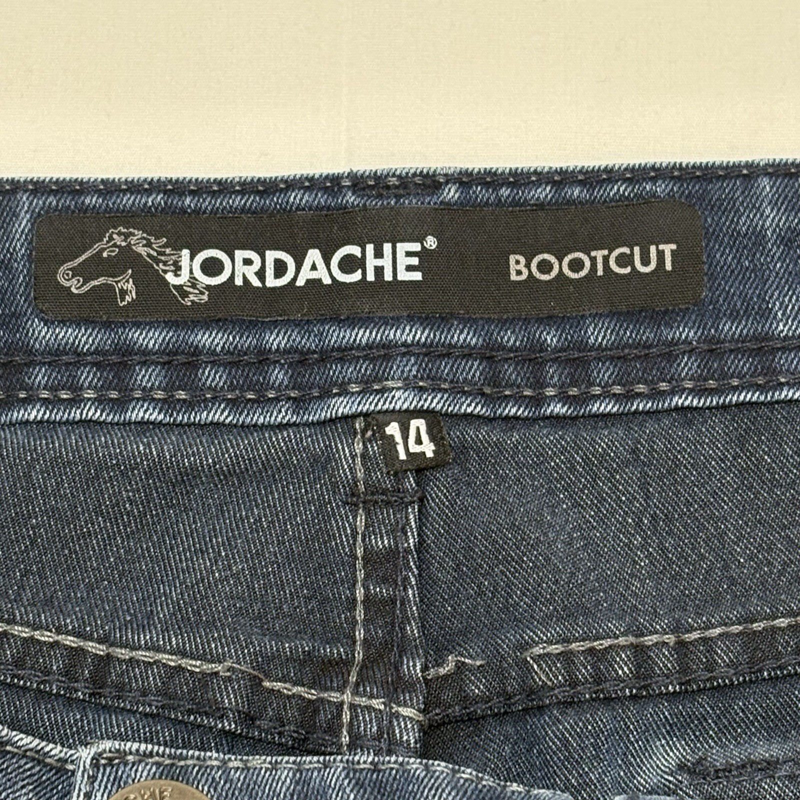 Jordache Jeans Woman's Size 14 Boot Cut Decorative Pockets Dark Blue Denim