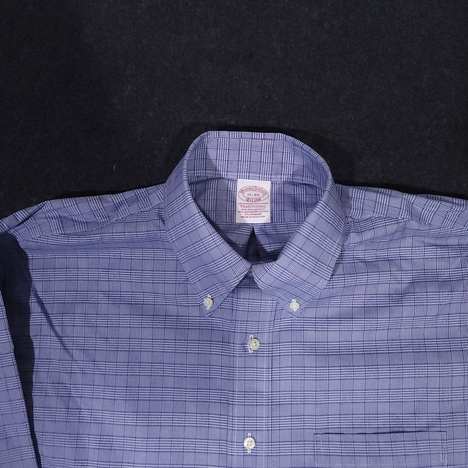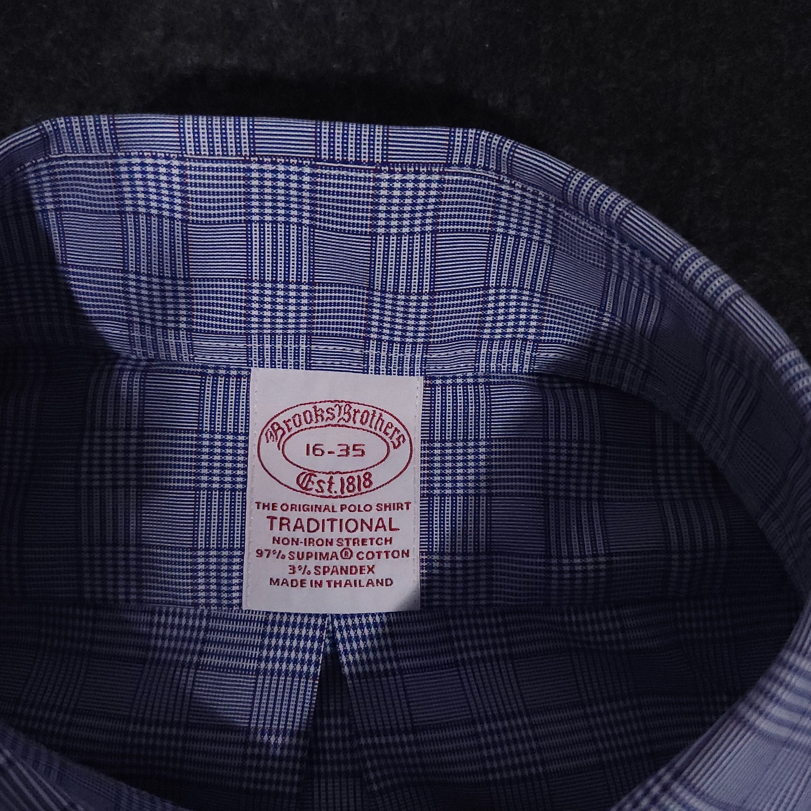как выглядит Brooks Brothers Stretch Oxford Button Down Shirt Mens 16-35 Blue Check Non Iron фото