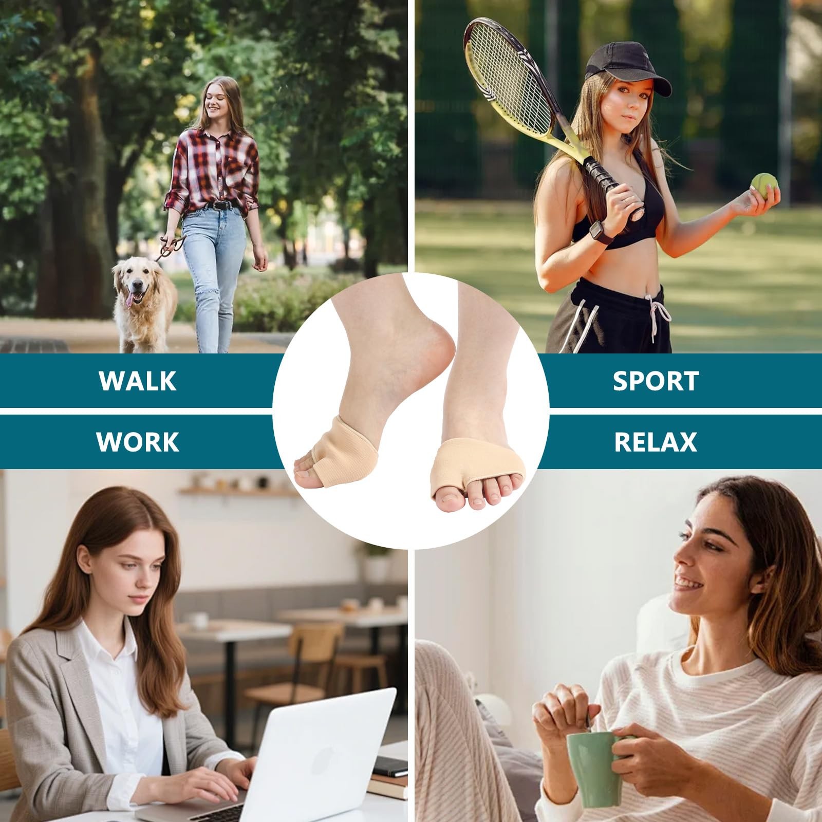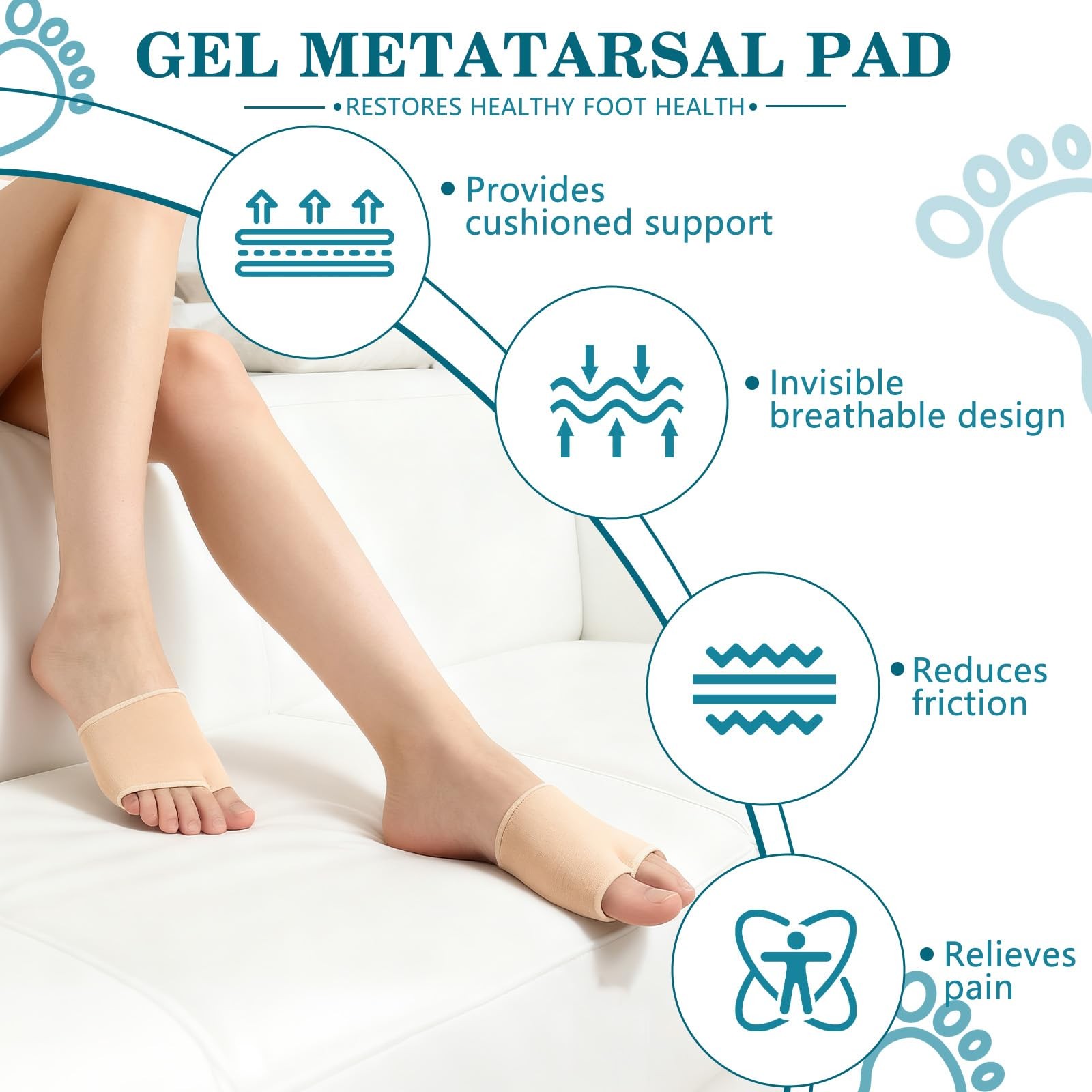 ZRCZRC 4Pcs Metatarsal Pads for Men and Women, Ball of Foot Cushion M, Beige