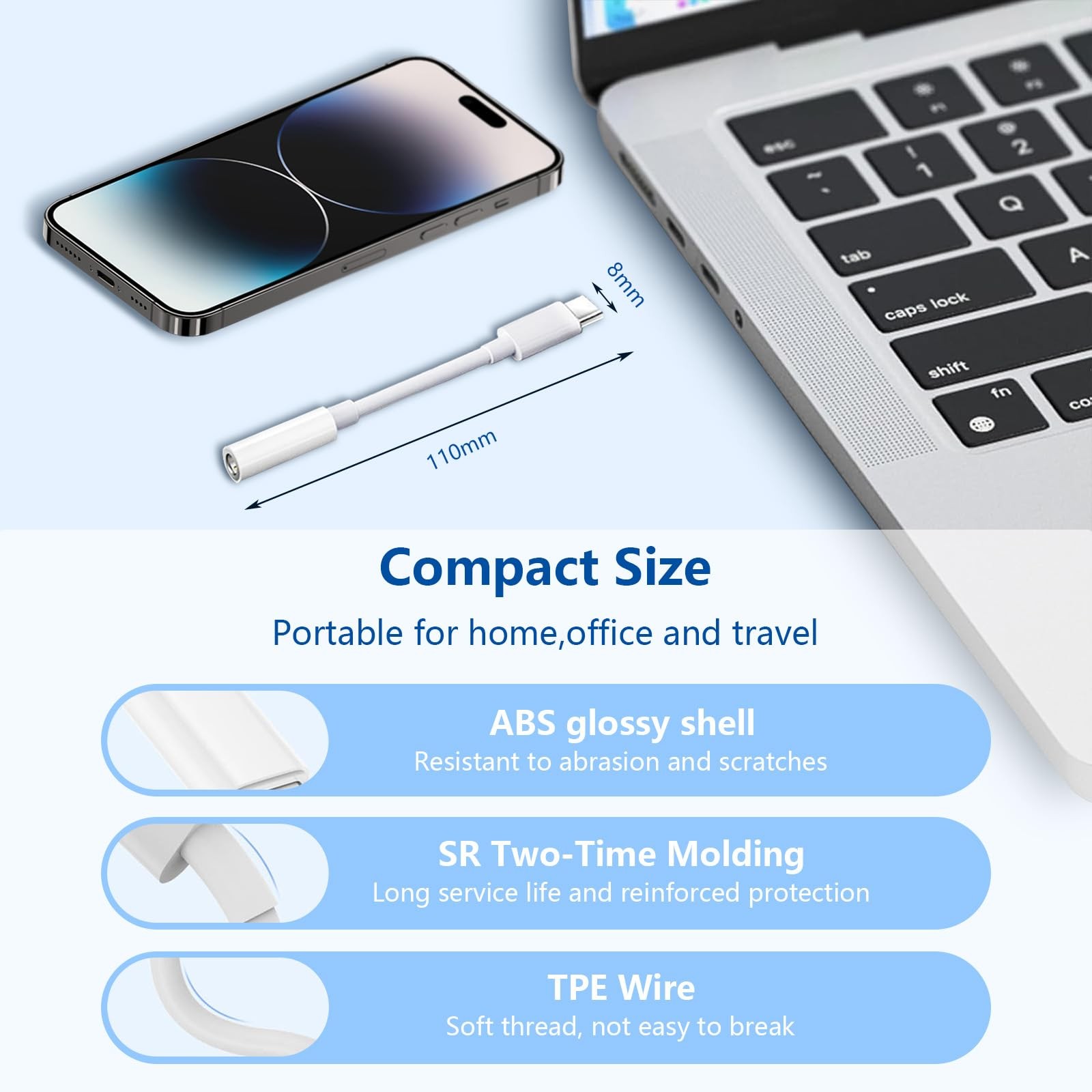 5 Pack USB C to 3.5mm Headphone Jack Adapter Type C Audio Aux Cable White