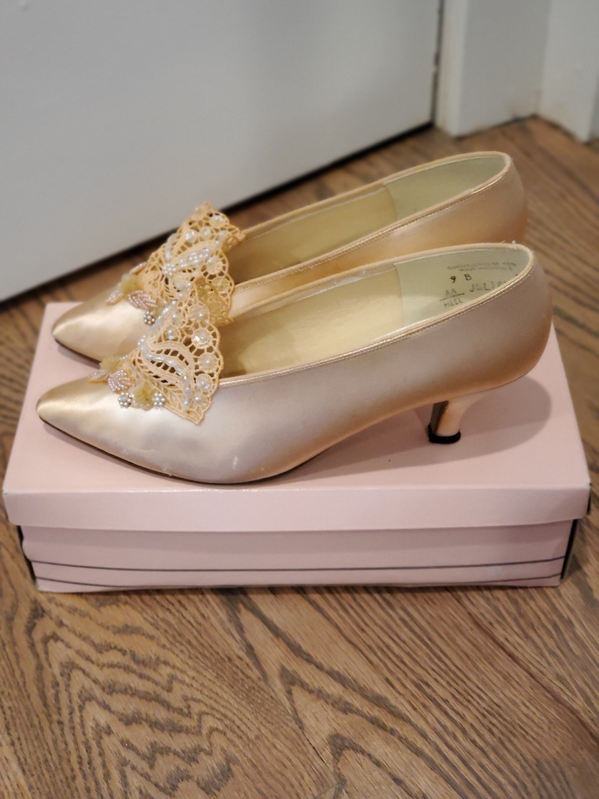 как выглядит dyeable shoes blush silk with beading size 9 фото