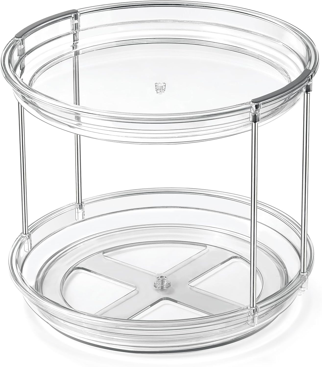 2 Tier Lazy Susan Organizer, 9.25'' Lazy Susan Turntable for Cabinet, Stackable