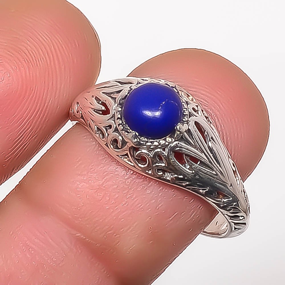 Lapis Lazuli Gemstone 925 Sterling Silver Boho Ring s.9.5 R7647-30