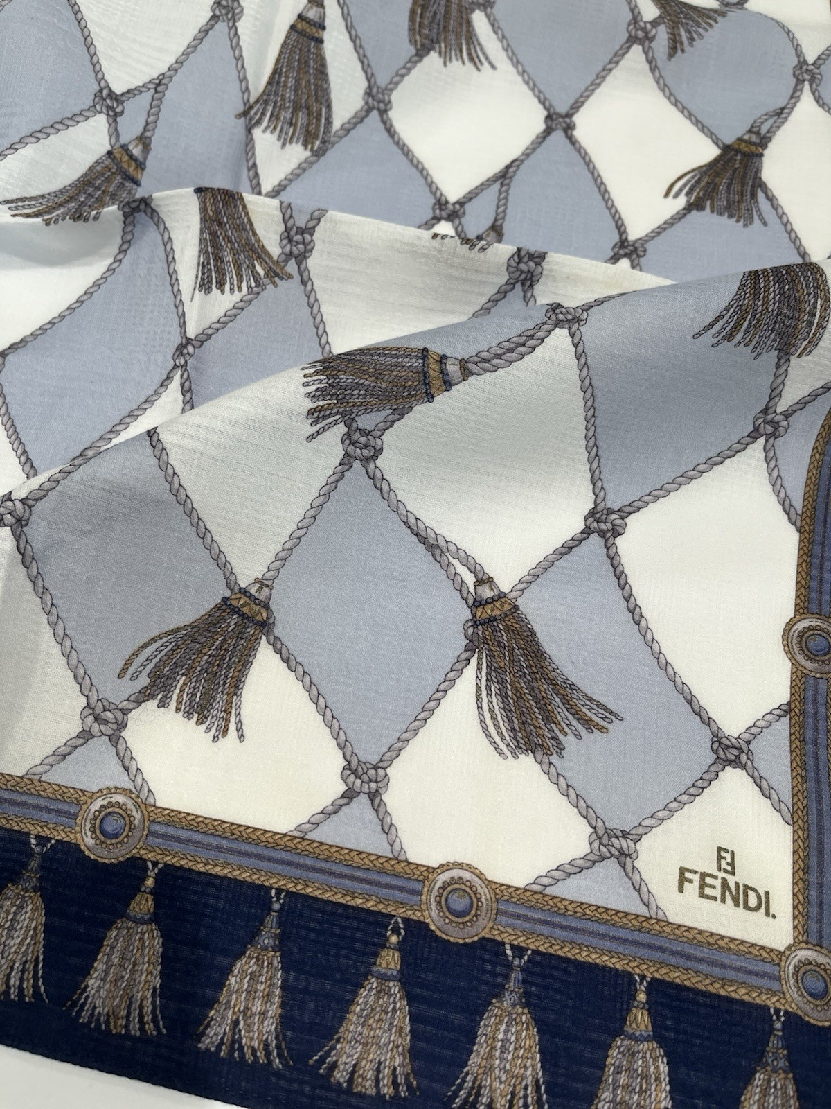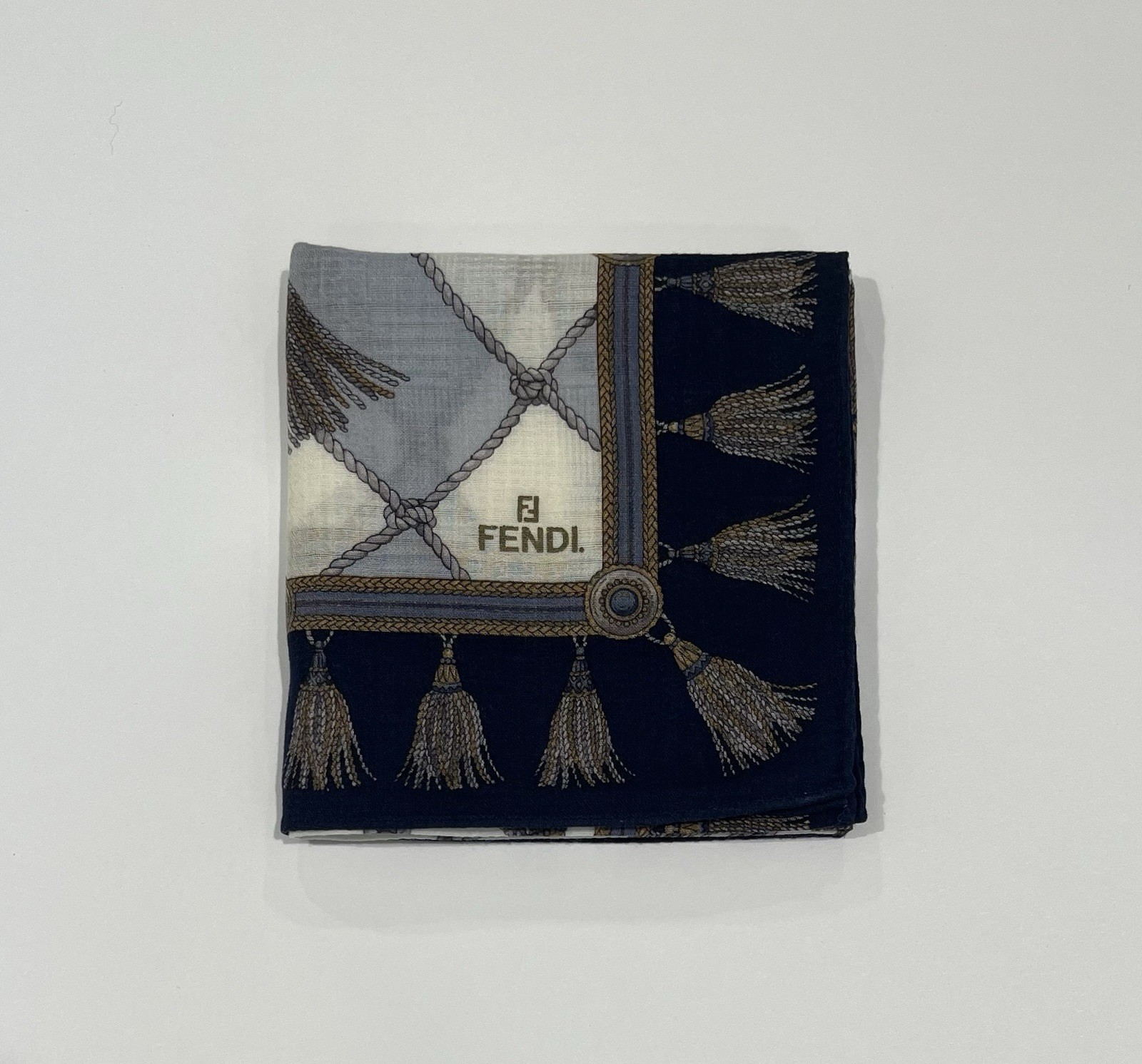 как выглядит FENDI Handkerchief Vintage Blue Cotton Art Logo Plaid Plain Pocket Square 19 фото