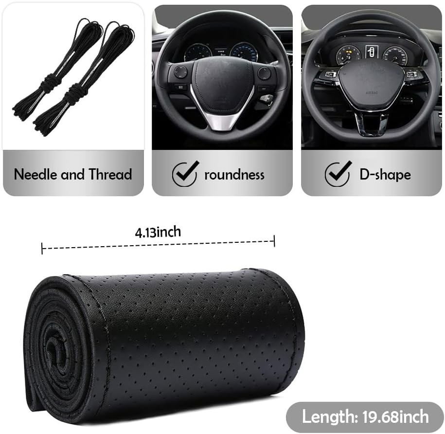 • Stitch Steering Wheel Cover, Leather Steering Wheel Wrap with Needle and Thread,