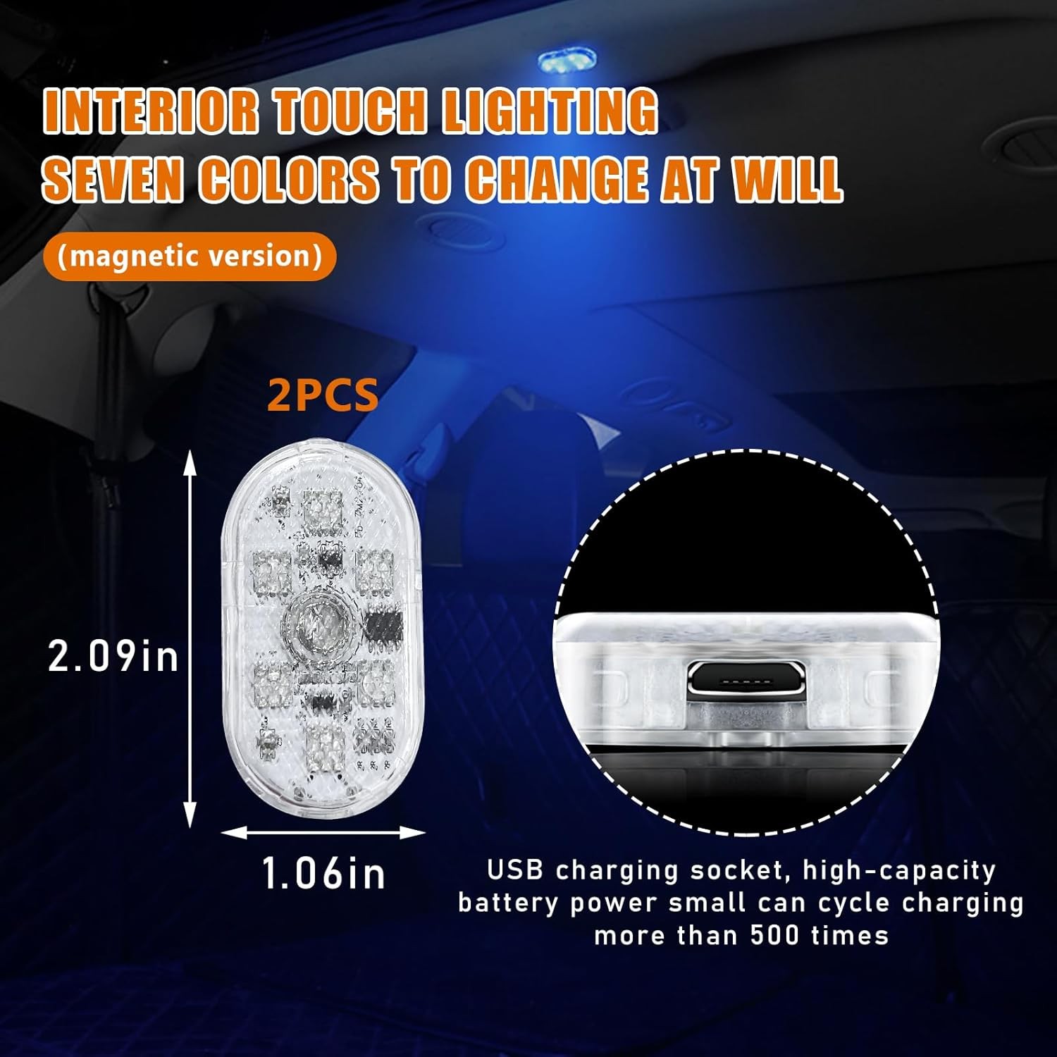 2 PCS Car LED Lights Interior Wireless, 7 Colors Magnetic Auto Interior Light wi
